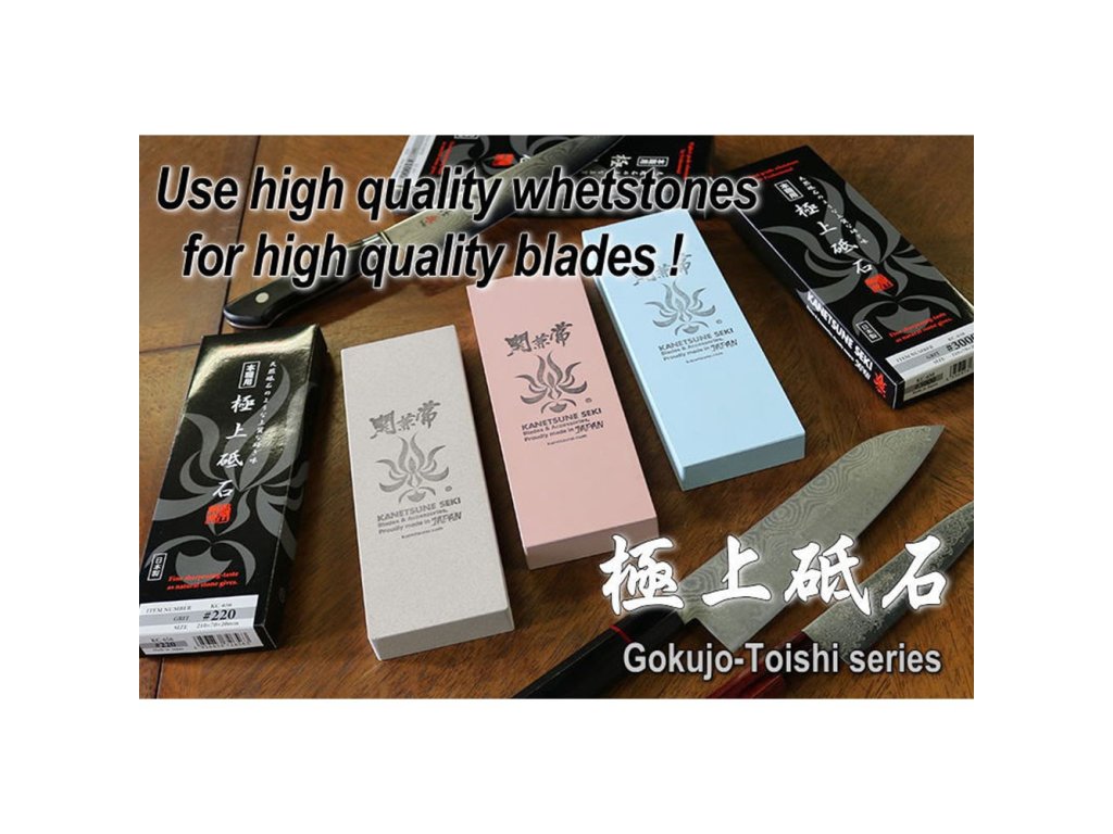 極 上 砥石 Gokujo-Toishi řada (KC-656 / KC-657 / KC-658) je známá pro svou vysokou kvalitu. Jedná se o velmi kvalitní brusné kameny, které nejsou určeny pouze pro profesionály. Na těchto kamenech pohodlně nabrousíte a dosáhnete podobných výsledků jako při použití vysoce kvalitních přírodních kamenů. Dokonce i ocel s vysokou tvrdostí se na těchto kamenech brousí rychle a efektivně. Práce s brusnými kameny Kanetsune řady Gokujo-Toishi vám přinese vynikající ostří a krásný lesklý povrch. Užijte si kvalitní broušení s těmito kameny.