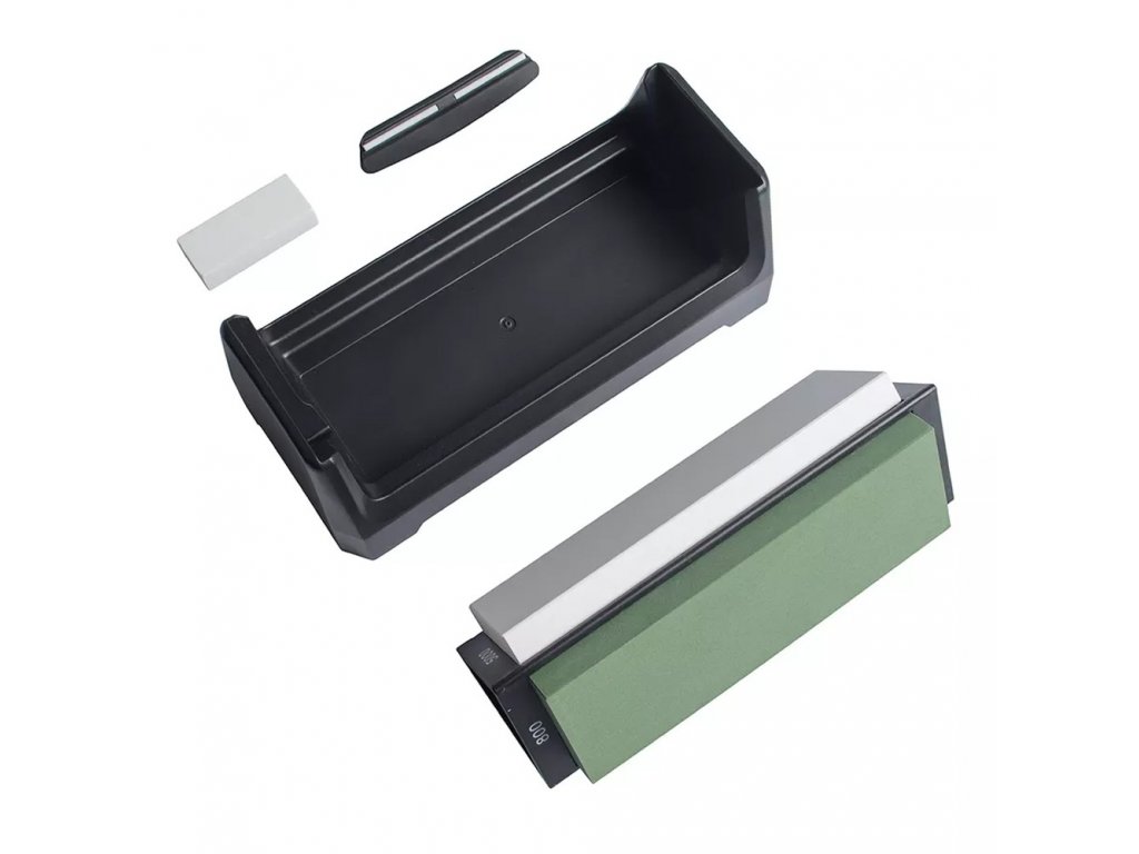 Kromě toho, abyste zajistili konzistentní broušení, nabízíme vodítko pro ruční broušení nožů. Držte stejný úhel broušení při každém tahu a na obou stranách nože díky tomuto účinnému pomocníkovi.