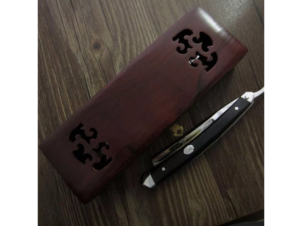 Velmi kvalitní a ručně vyrobená břitva s 7/8 palcovou čepelí z japonské leštěné uhlíkové oceli ACRM-2 (White Steel Shiro Gami) o tvrdosti 60-63 HRC. Tato ocel není nerezová. Použití této velmi tvrdé oceli zajišťuje extrémní řezné vlastnosti. Čepel je broušena pod úhlem 15-20 stupňů a zajišťuje velmi jemné a optimální oholení. Rukojeť je ručně broušena ze dřeva Black Algum. Vyváženost této břitvy je naprosto dokonalá a holení s břitvou TITAN Black Algum bude pro Vás jedinečným potěšením a zážitkem. Tato břitva je vhodná jak pro začátečníky, tak pro zkušené samuraje. S náležitou péčí se z této břitvy stane přítel na celý Váš život a kdo ví, možná i Vaše vnoučata se oholí s touto Vaší jedinečnou břitvou !