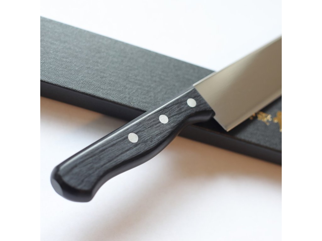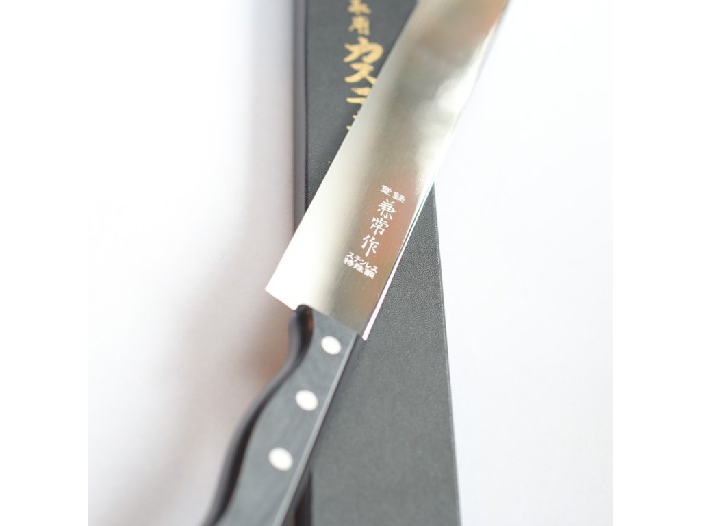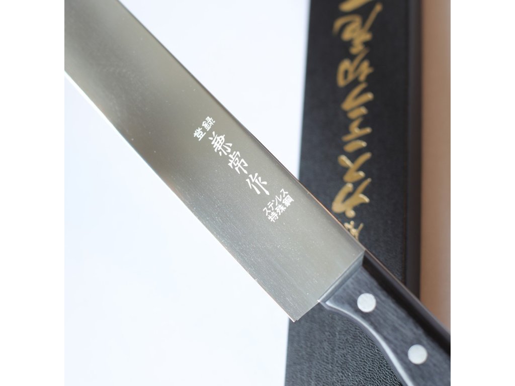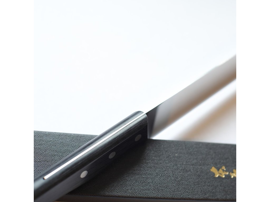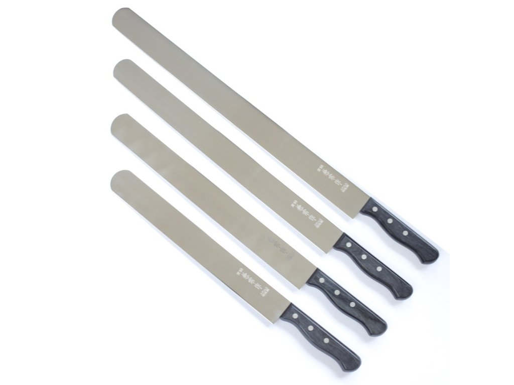 Hladkým dlouhým nožem snadno rozkrojíte piškotové korpusy na dort. Můžete si jím pomoct při přenášení jednotlivých kousků a díky pružné flexi čepeli se dobře roztírají krémy na dortech, řezech a roládách dohladka. Čepelí nahřátou v horké vodě velmi snadno rozetřete čokoládu na dezertech a zároveň snadno nakrájíte čokoládou politý dort a řezy, aniž by došlo k polámání čokolády. Tyto nože dobře fungují i při krájení pečiva, toustového chleba, baget a dalších pekařských výrobků, stejně tak i na okrajování kebabu, nebo stahování kůže při filetování ryb. Rukojeti jsou vyrobeny z materiálu Plywood, flexi čepele pak z nerezové oceli AUS-8.