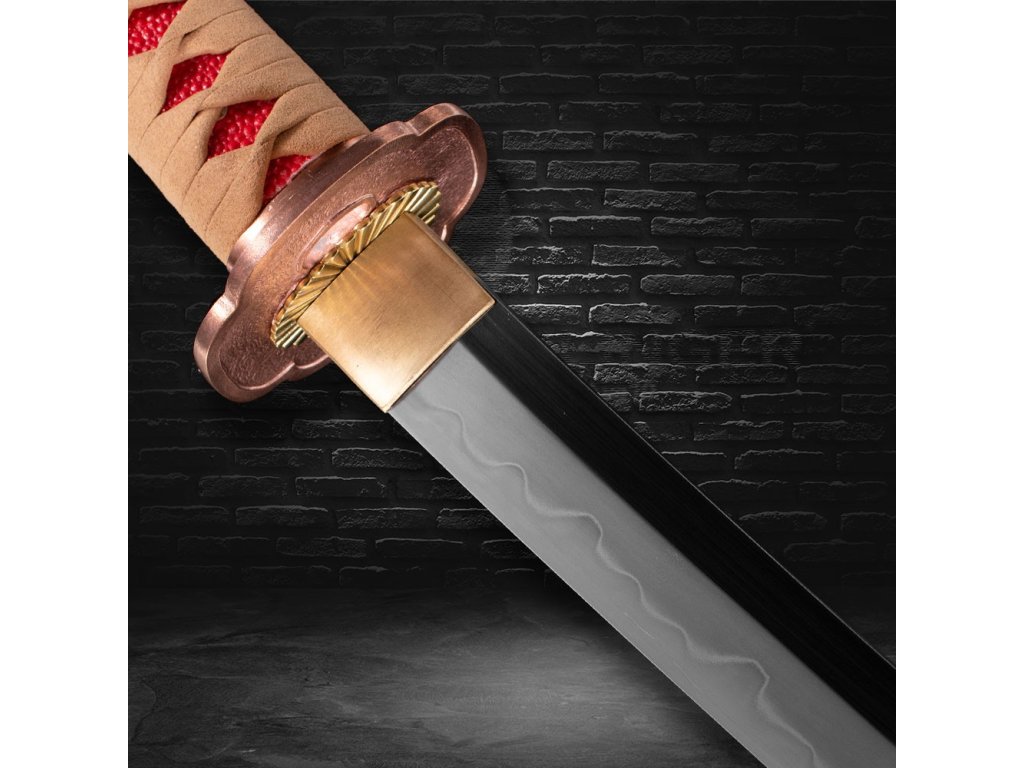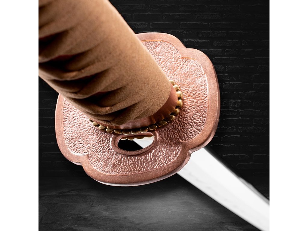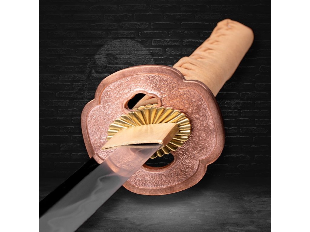 Plášť (saya) je vyroben z tvrdého dřeva, ručně lakován do dokonalého lesku, což podtrhuje luxusní charakter této katany. Ozdoby a prvky koshirae jsou kompletně z mědi, což přispívá k autenticitě a odolnosti této zbraně.