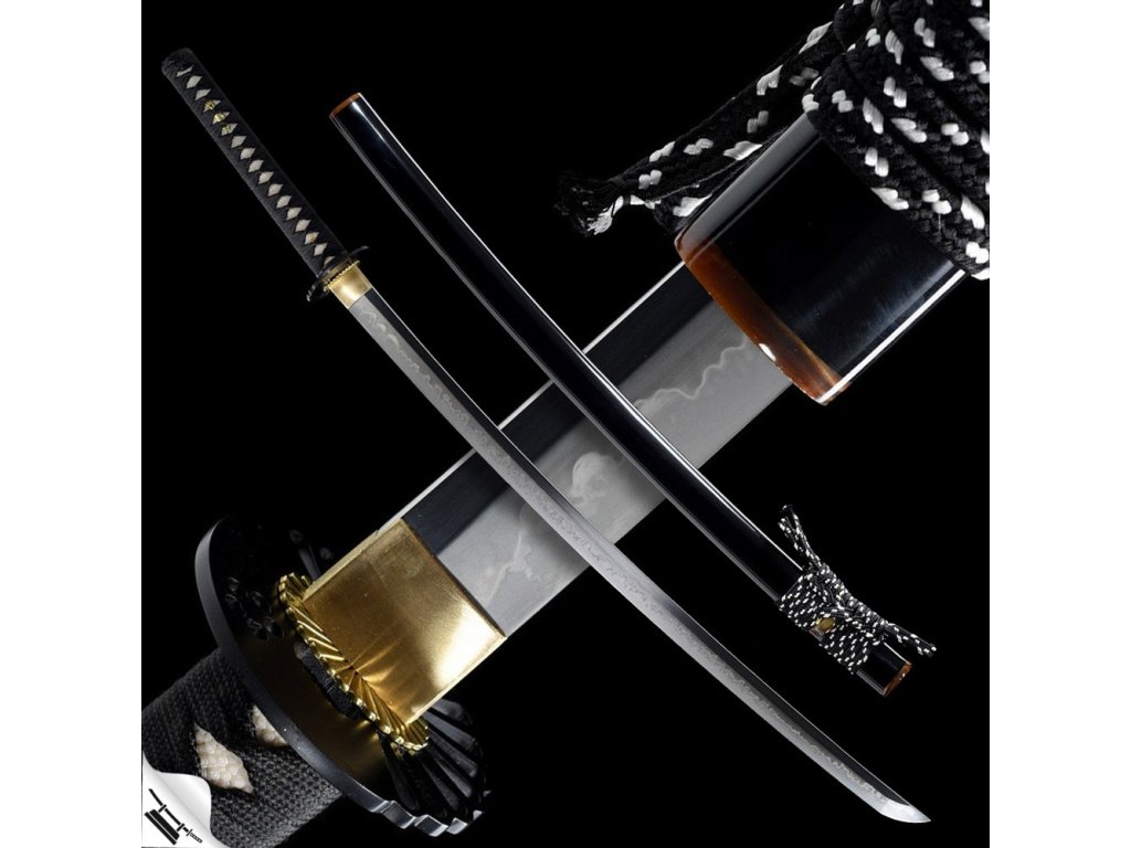 Plášť (saya) je ručně vyroben z tvrdého dřeva s lesklým černým lakem, který podtrhuje exkluzivní charakter této katany.