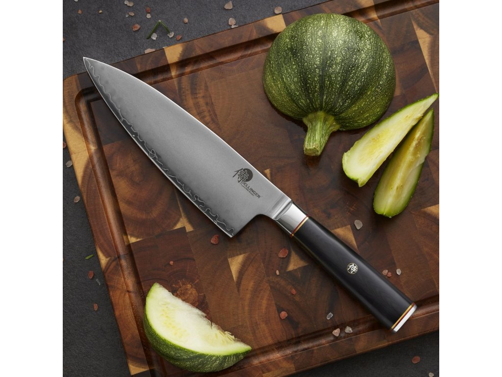 - Jádro z japonské oceli AUS-10 o tvrdosti 58–62 HRC ti zaručí ostrost, co vydrží a neotupí se po prvním salátu.