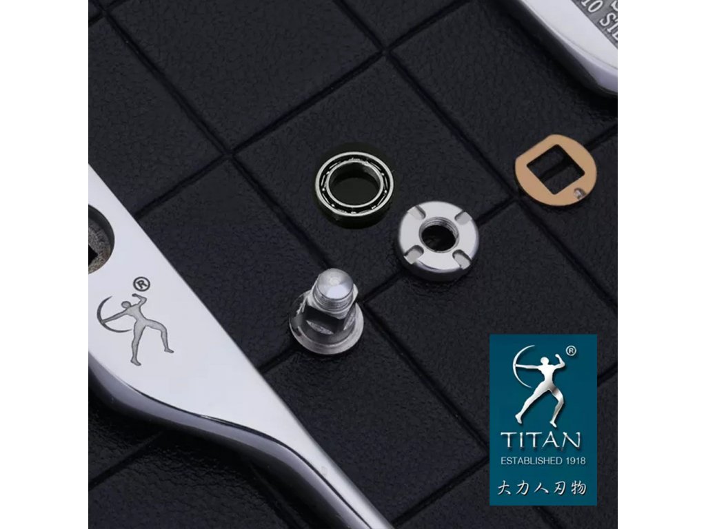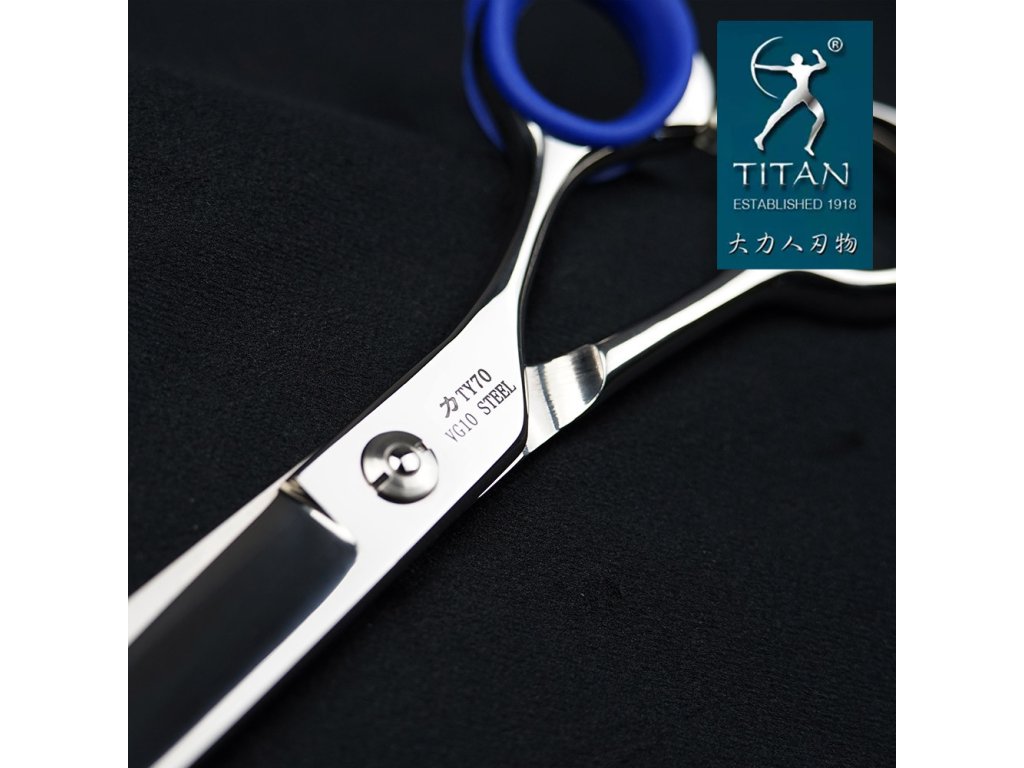 Nůžky TITAN TY70 VG-10 jsou extrémně ostré a ručně broušené. Pro výrobu břitů byla použita exkluzivní japonská ocel VG-10. Výsledkem je dlouhodobá ostrost a vynikající retence hran téměř žiletkového ostří. Konvexní ostří nůžek je ideální pro klouzavý střih. Nůžky mají ergonomicky tvarované očko pro palec a pevnou opěru pro malíček, díky čemuž se zajistí pohodlné držení s odlehčeným a bezchybně přesným střihem.