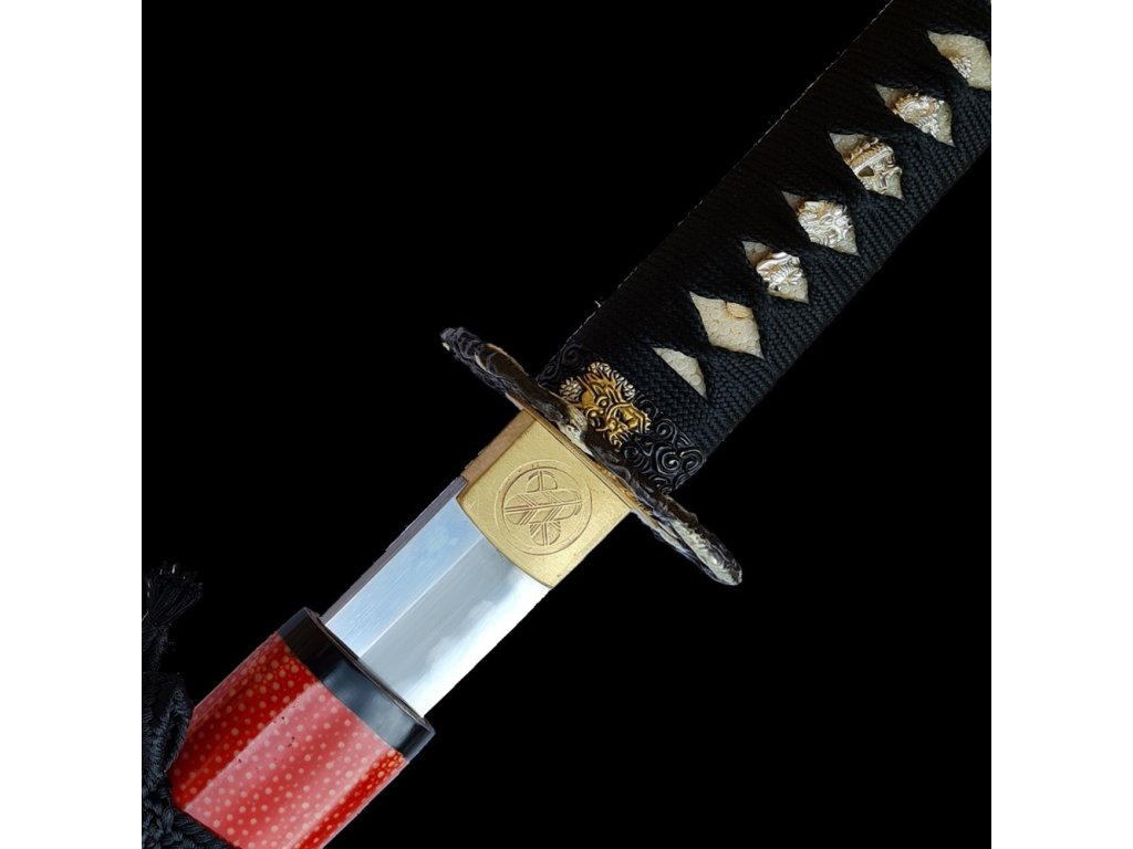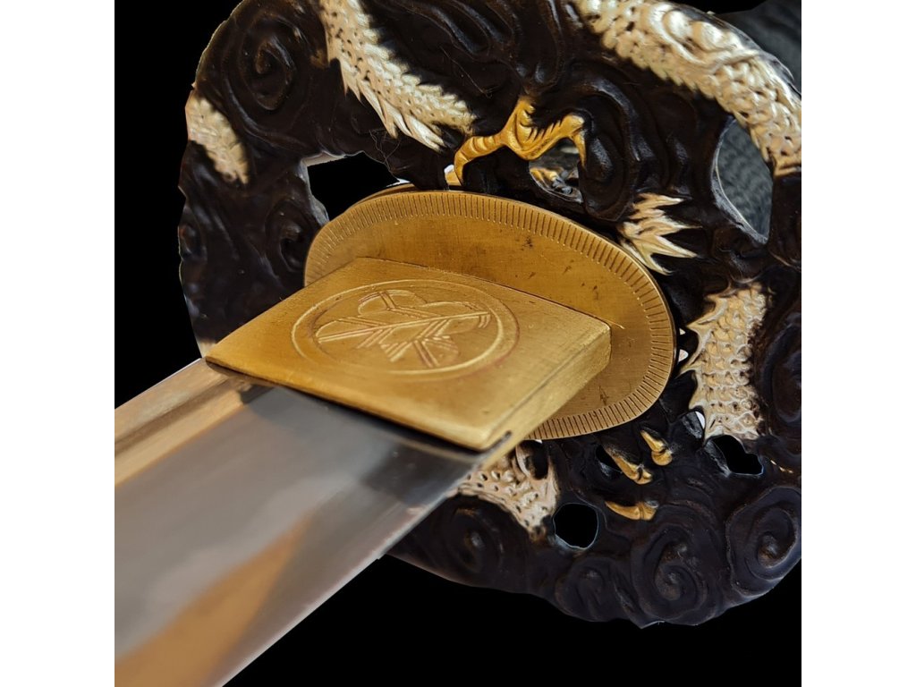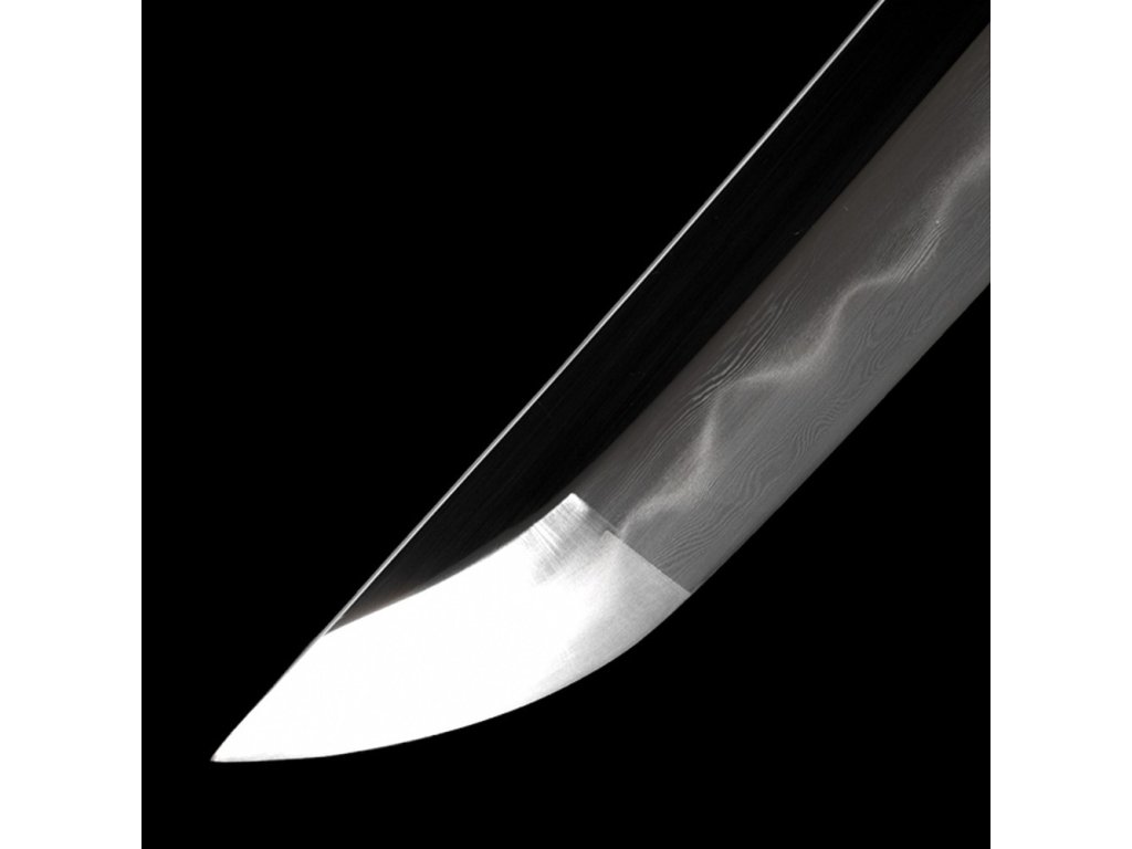 Reálný Choji hamon je tvořen dle dávných tradičních metod, které vychází z mnohaletých zkušeností kovářských mistrů. Tento proces vytváří na čepeli překrásný hamon Hada a Martensite (zrna). Jedná se o špičkovou repliku samurajského meče, která je vhodná k sekovým zkouškám a lze ji rozložit. Tato čepel byla vyzkoušena a testována tak, aby odstranila vše co jí stojí v cestě ! Sori (zakřivení čepele) umožňuje provádění sekání tak, aby bylo dosaženo co možná nejjemnějších a nejčistších řezů. To vše v kombinaci s výběrem tradičního Koshirae zaručuje, že získáte to nejlepší z hlediska vzhledu i funkčnosti. Monokompositnítní uhlíková ocel AISI 1075 má působivou tvrdost ve škále HRC- perfektní kombinace této tvrdosti je podtrženo zakřivením čepele Sori, které umožňuje snadné přeseknutí tatami, slaměné rohože, nebo bambusu pro tameshigiri. Full tang konstrukce této katany výrazně zvyšuje sílu meče. Hrot čepele je tvarovaný shinogi-zukuri a shubo zukuri kissaki (špičatý hrot), který je velmi dobře definován tím, že hamon prochází po celé délce přes Boshi.