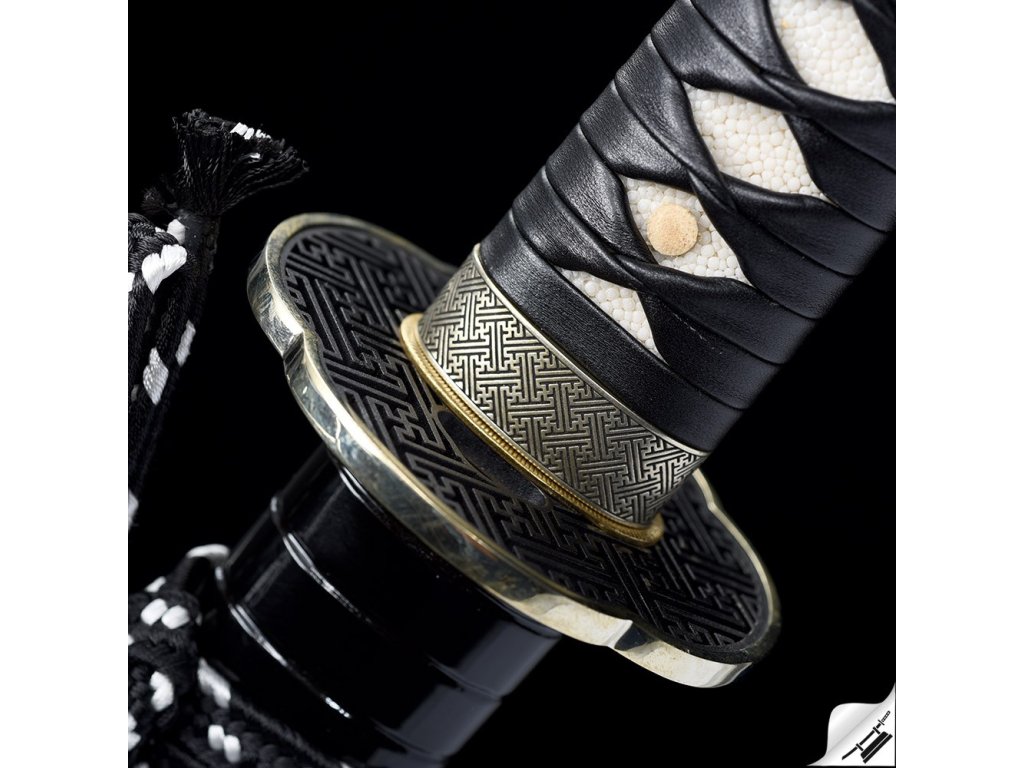 • Tsuka - (rukojeť) dřevěné jádro, potažena pravou rejnočí kůží (Samegawa), s černou koženou omotávkou ITO. Čepel zajištěna 2 kolíky "mekugi".