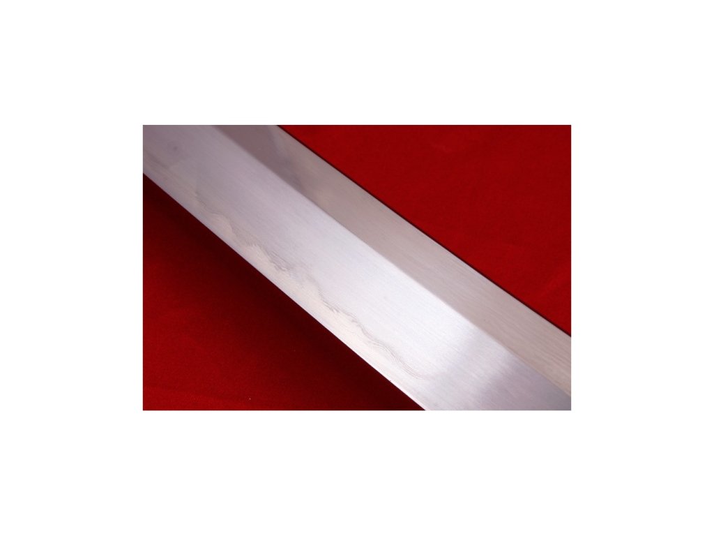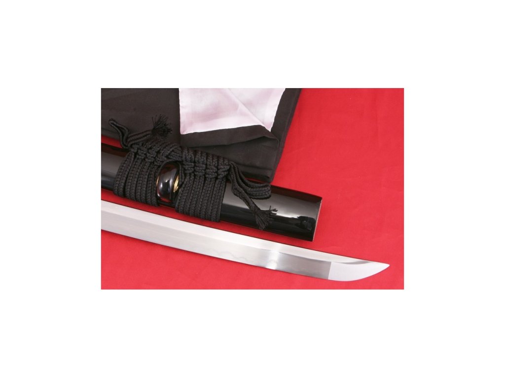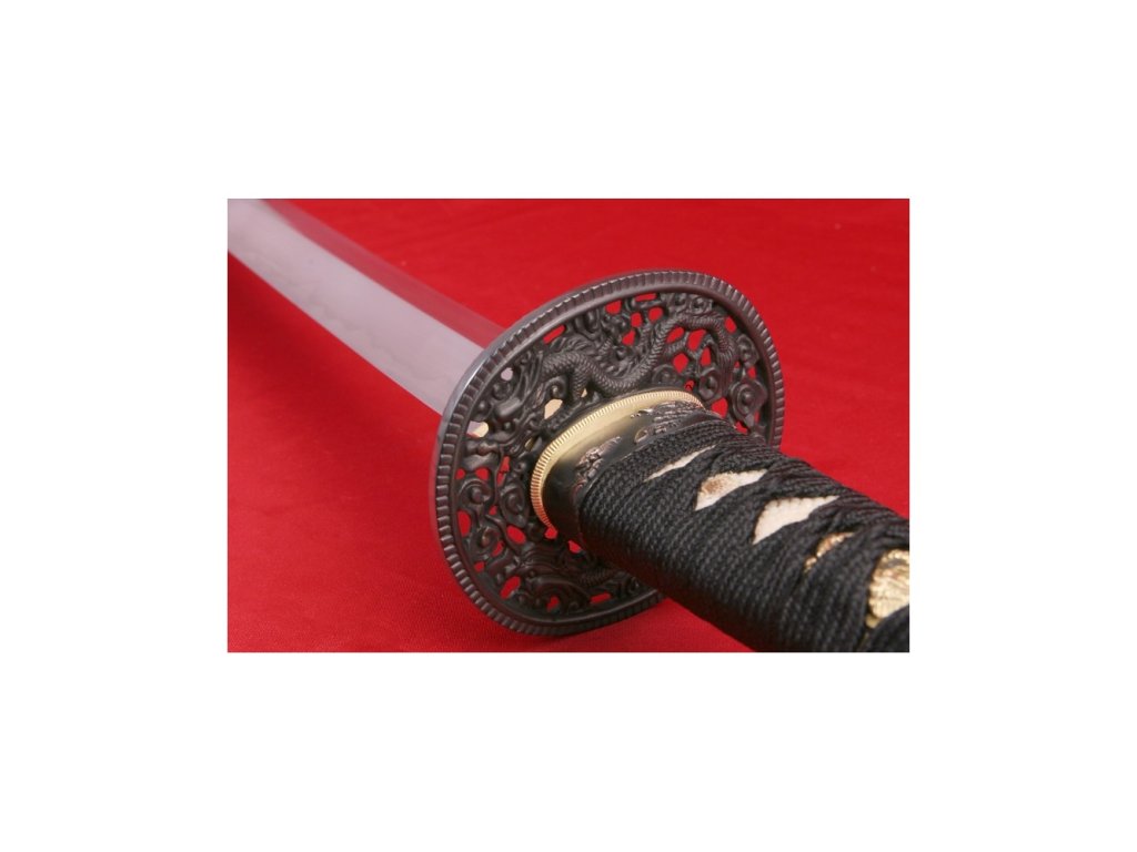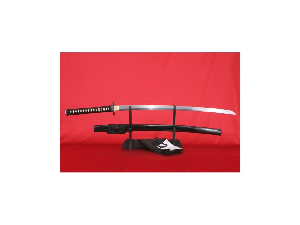 Reálný Choji hamon je tvořen dle dávných tradičních metod, které vychází z mnohaletých zkušeností kovářských mistrů. Tento proces vytváří na čepeli překrásný hamon Hada a Martensite (zrna). Jedná se o špičkovou repliku samurajského meče, která je vhodná k sekovým zkouškám na měkčích cílech a lze ji rozložit. Tato čepel byla vyzkoušena a testována tak, aby odstranila vše co jí stojí v cestě ! Sori (zakřivení čepele) umožňuje provádění sekání tak, aby bylo dosaženo co možná nejjemnějších a nejčistších řezů. To vše v kombinaci s výběrem tradičního Koshirae zaručuje, že získáte to nejlepší z hlediska vzhledu i funkčnosti. Překládaná uhlíková ocel AISI 1045 má působivou tvrdost ve škále HRC- perfektní kombinace této tvrdosti a současná houževnatost je podtrženo zakřivením čepele Sori, které umožňuje snadné přeseknutí tatami, slaměné rohože, nebo bambusu pro tameshigiri. Full tang konstrukce této katany výrazně zvyšuje sílu meče. Hrot čepele je tvarovaný shinogi-zukuri a shubo zukuri kissaki (špičatý hrot), který je velmi dobře definován tím, že hamon prochází po celé délce přes Boshi.