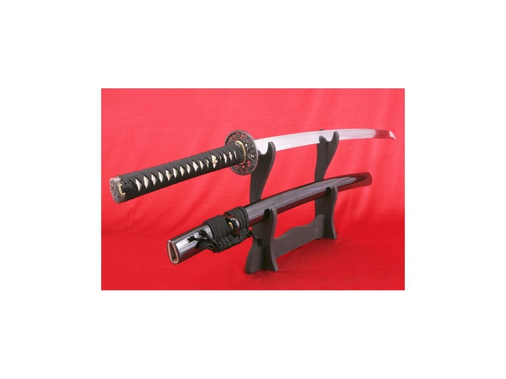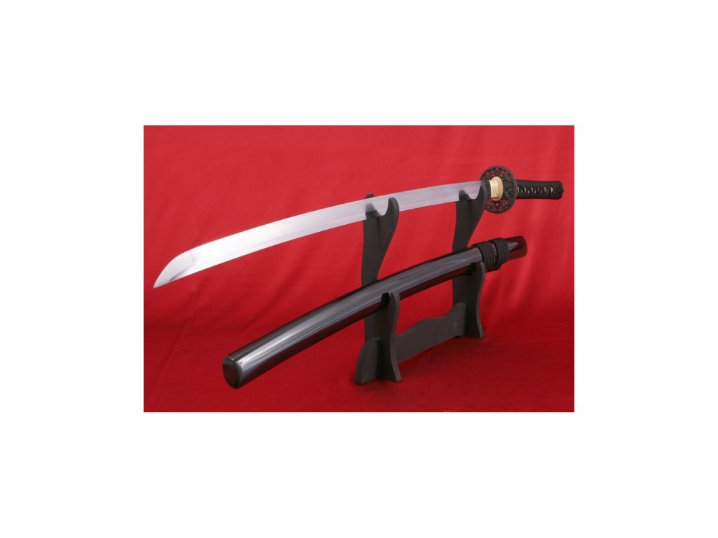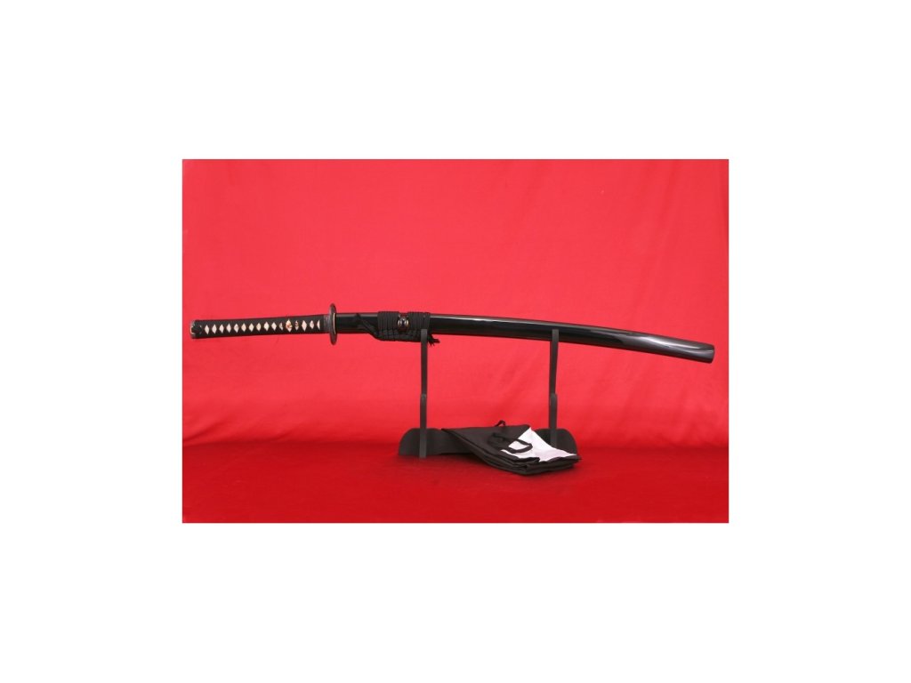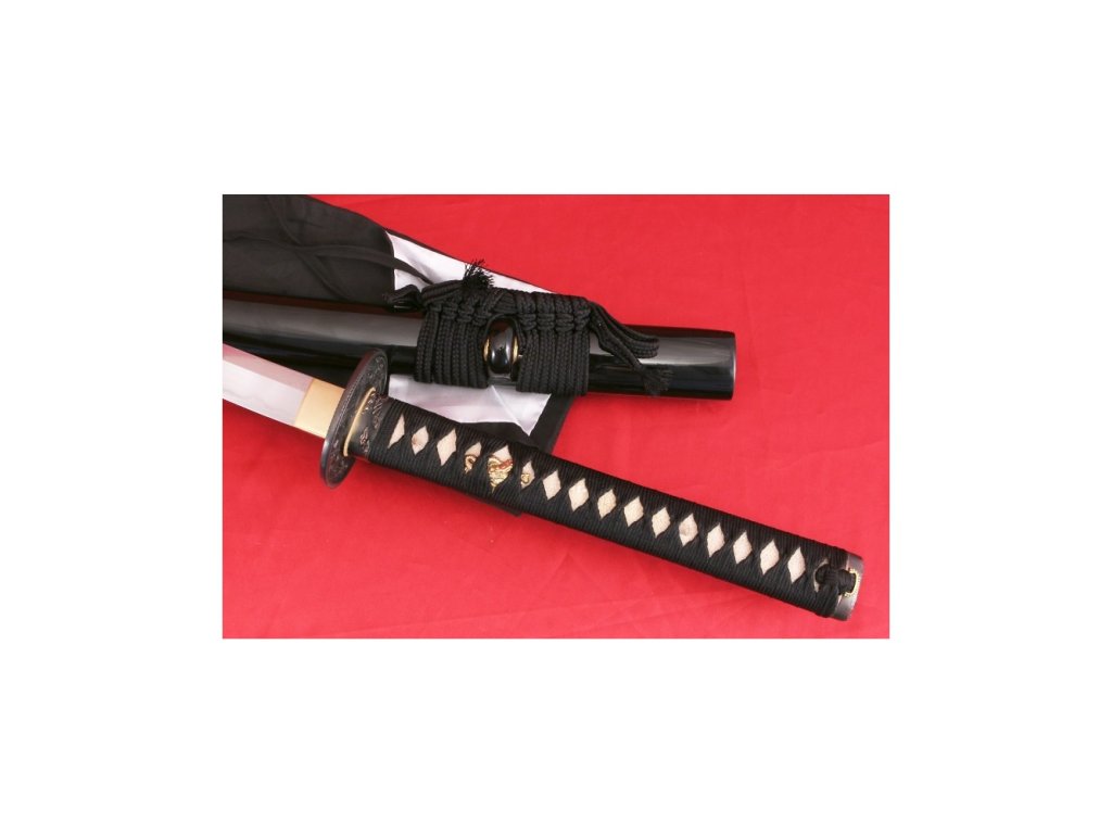 Reálný Choji hamon je tvořen dle dávných tradičních metod, které vychází z mnohaletých zkušeností kovářských mistrů. Tento proces vytváří na čepeli překrásný hamon Hada a Martensite (zrna). Jedná se o špičkovou repliku samurajského meče, která je vhodná k sekovým zkouškám na měkčích cílech a lze ji rozložit. Tato čepel byla vyzkoušena a testována tak, aby odstranila vše co jí stojí v cestě ! Sori (zakřivení čepele) umožňuje provádění sekání tak, aby bylo dosaženo co možná nejjemnějších a nejčistších řezů. To vše v kombinaci s výběrem tradičního Koshirae zaručuje, že získáte to nejlepší z hlediska vzhledu i funkčnosti. Překládaná uhlíková ocel AISI 1045 má působivou tvrdost ve škále HRC- perfektní kombinace této tvrdosti a současná houževnatost je podtrženo zakřivením čepele Sori, které umožňuje snadné přeseknutí tatami, slaměné rohože, nebo bambusu pro tameshigiri. Full tang konstrukce této katany výrazně zvyšuje sílu meče. Hrot čepele je tvarovaný shinogi-zukuri a shubo zukuri kissaki (špičatý hrot), který je velmi dobře definován tím, že hamon prochází po celé délce přes Boshi.
