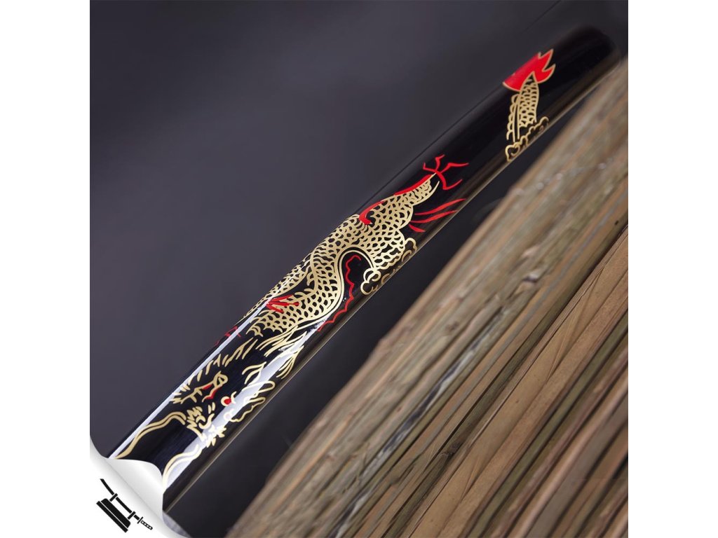 ✅ saya: (plášť - obal) vyroben z tvrdého dřeva, černé lesklé provedení zdobené kresbami. Kvalitní hedvábný oplet Sage-O je vázán kolem Kurigaty