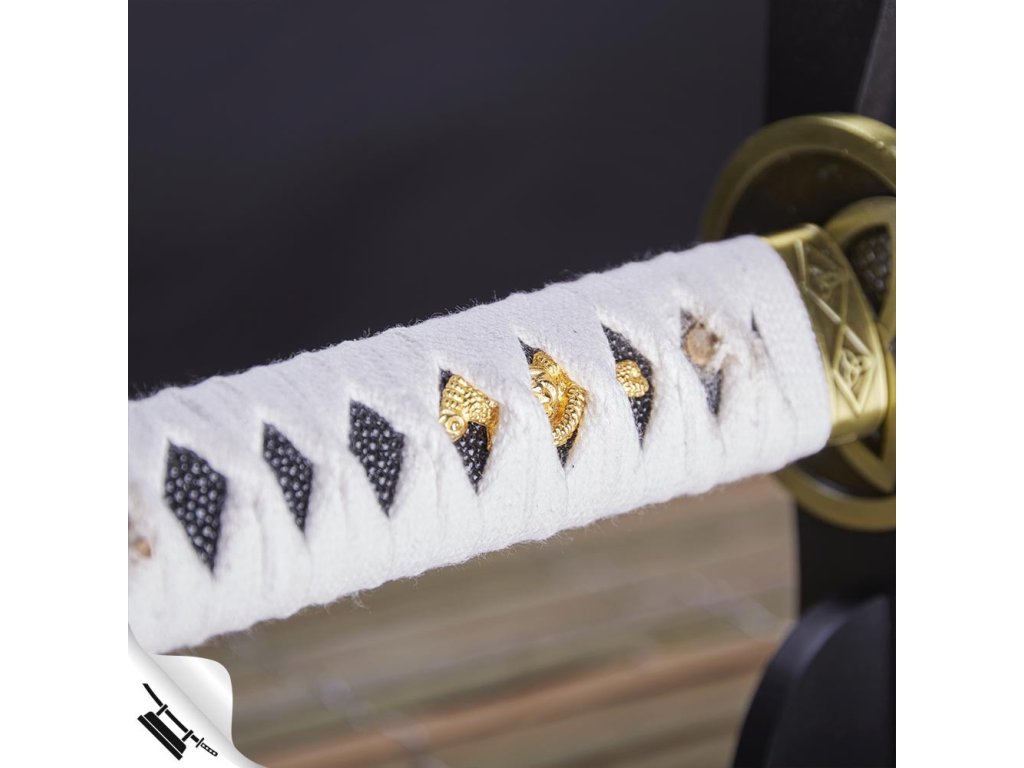 • tsuka: (rukojeť) dřevěné jádro s vloženou pravou kůží z rejnoka (Samegawa) oplet ITO bílé barvy. Čepel katany je zajištěna dvěma bambusovými kolíky (mekugi). Čepel od rukojeti můžete odmontovat vytažením těchto kolíků. Na obou stranách Tsuky je menuki (ornament).