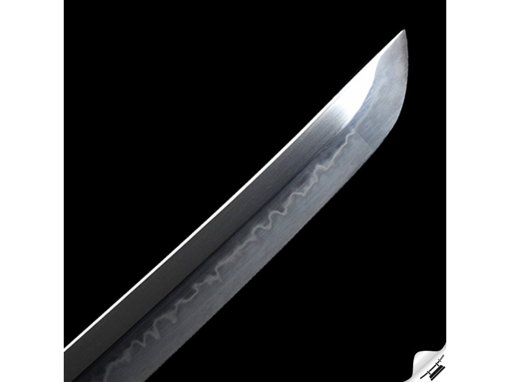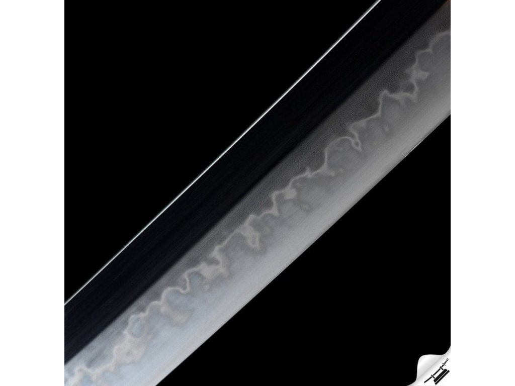 Ručně kovaná čepel z oceli T-10 té nejvyšší kvality. Ocel byla laminována v monokompositní konfiguraci Maru - diferenciálně tvrzená. Uhlíková ocel T-10 (obsah 1,1% uhlíku a 0,4% manganu) je velmi pevná a skvěle drží ostrost. Čepel bez žlábku bo-hi byla ve finální fázi ručně leštěna kamenem hazuya - tím je dosaženo téměř žiletkového ostří (razor sharp) a zrcadlového lesku.