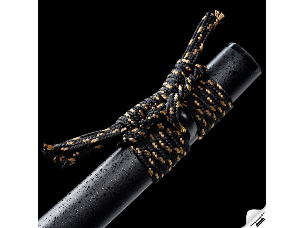 Výrazný reálný Choji hamon je tvořen dle dávných tradičních metod, které vychází z mnohaletých zkušeností kovářského mistra, který výrobou této nádherné zbraně strávil několik dnů. Vše na tomto meči je individuálně zhotoveno, včetně saye a habaki, jsou použity nejkvalitnější komponenty, včetně špičkového laku na sayu, japonského hedvábí a skutečné rejnočí kůže nejvyšší kvality. Jedná se o špičkovou repliku samurajského meče, která je vhodná k sekovým zkouškám a lze ji rozložit na jednotlivé části. Tato čepel byla vyzkoušena a testována tak, aby odstranila vše co jí stojí v cestě ! Sori (zakřivení čepele) je speciálně navrženo tak, aby bylo dosaženo co možná nejjemnějších a nejčistších řezů. To vše v kombinaci s výběrem tradičního kovaného Koshirae zaručuje, že získáte to nejlepší z hlediska vzhledu i funkčnosti. Uhlíková ocel T-10 má působivou tvrdost HRC 58 - perfektní kombinace této tvrdosti je podtrženo zakřivením čepele Sori, které umožňuje snadné přeseknutí tatami, slaměné rohože, nebo bambusu pro tameshigiri. Full tang konstrukce této katany výrazně zvyšuje sílu meče. Čepel je typu shinogi-zukuri, tento typ čepele se vyrábí od 10.století našeho letopočtu. Hrot meče ko kissaki se skutečným Diamond-Shaped Yokote, které je velmi dobře definováno tím, že hamon prochází po celé délce přes Boshi. Yokote je velmi důležité pro strukturální integritu špičky meče. Pomáhá absorbovat otřes, rozptýlí sílu a přispívá k stabilitě a síle meče při tzv. sekořezu. Tato katana (samurajský meč) je vhodná na použití v praxi, firma Dellinger se však zříká jakékoliv odpovědnosti za zranění a poškození vzniklá při použití. Schraňujte mimo dosah dětí ! Jakákoliv manipulace se samurajským mečem je na vaší vlastní odpovědnost. Nezapomeňte, že máte ve svých rukou smrtící zbraň !