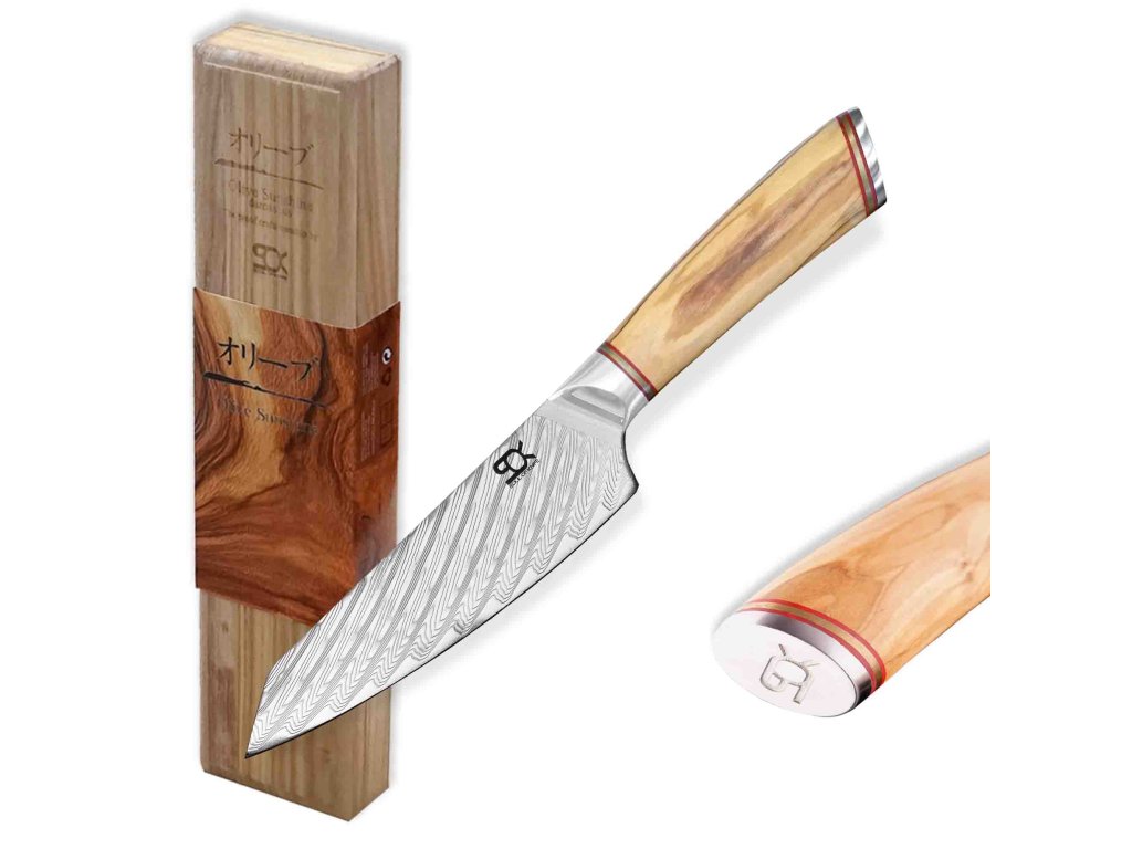 Japonský kuchařský nůž Chef SOK Olive Sunshine Damascus – dokonalá kombinace elegance a výkonu