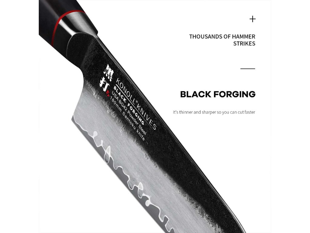 Nůž „tří ctností“ Santoku Konoll® Black Forging 180 mm