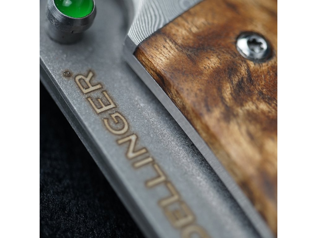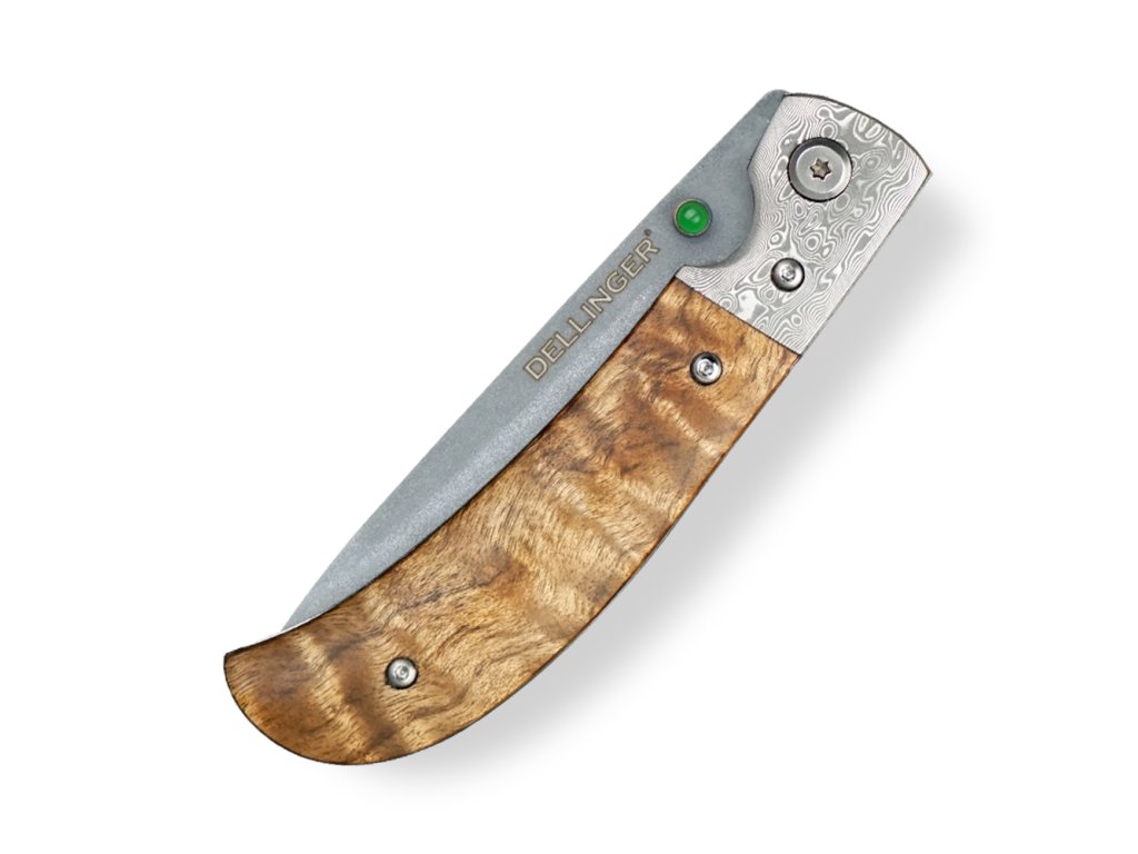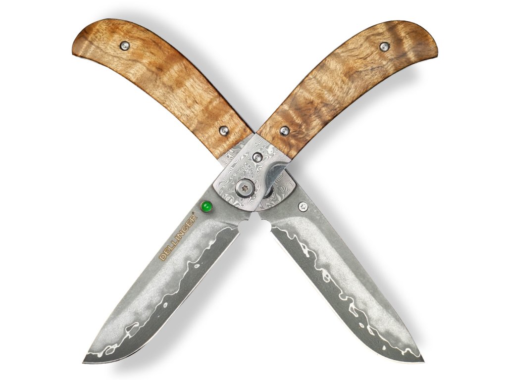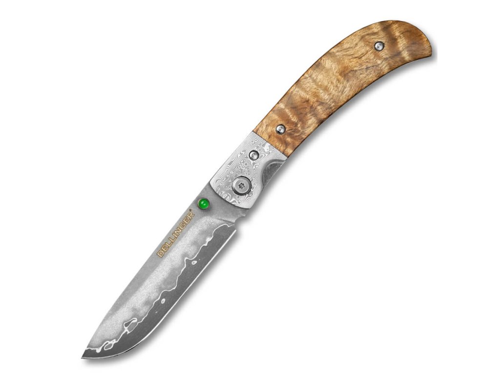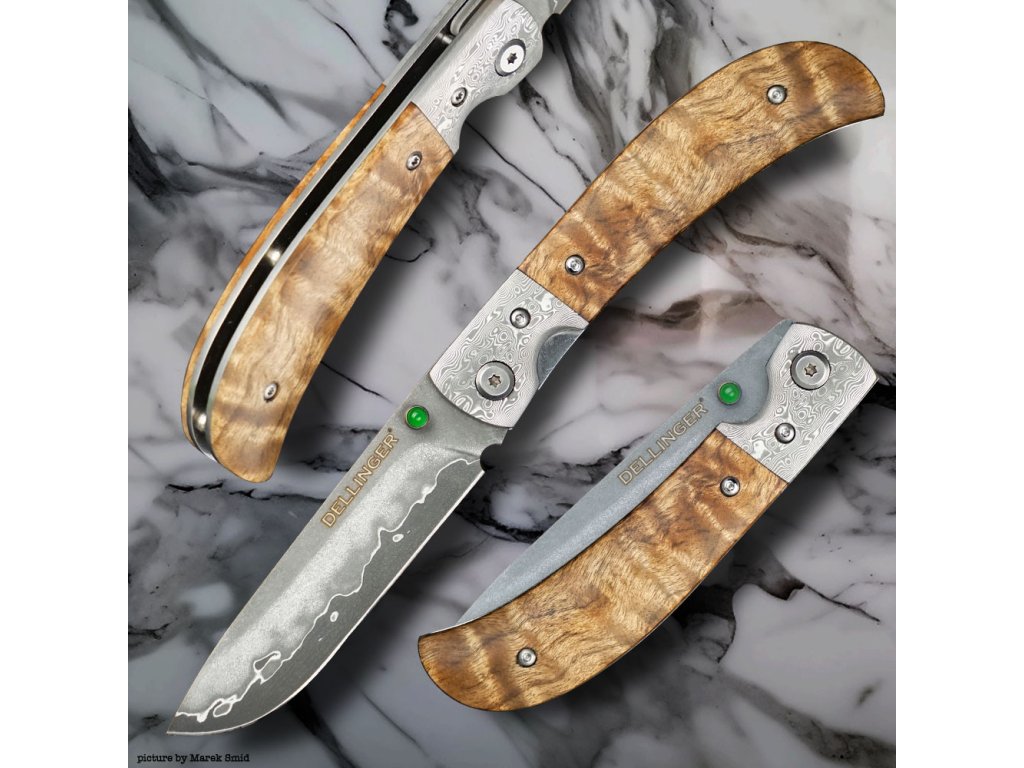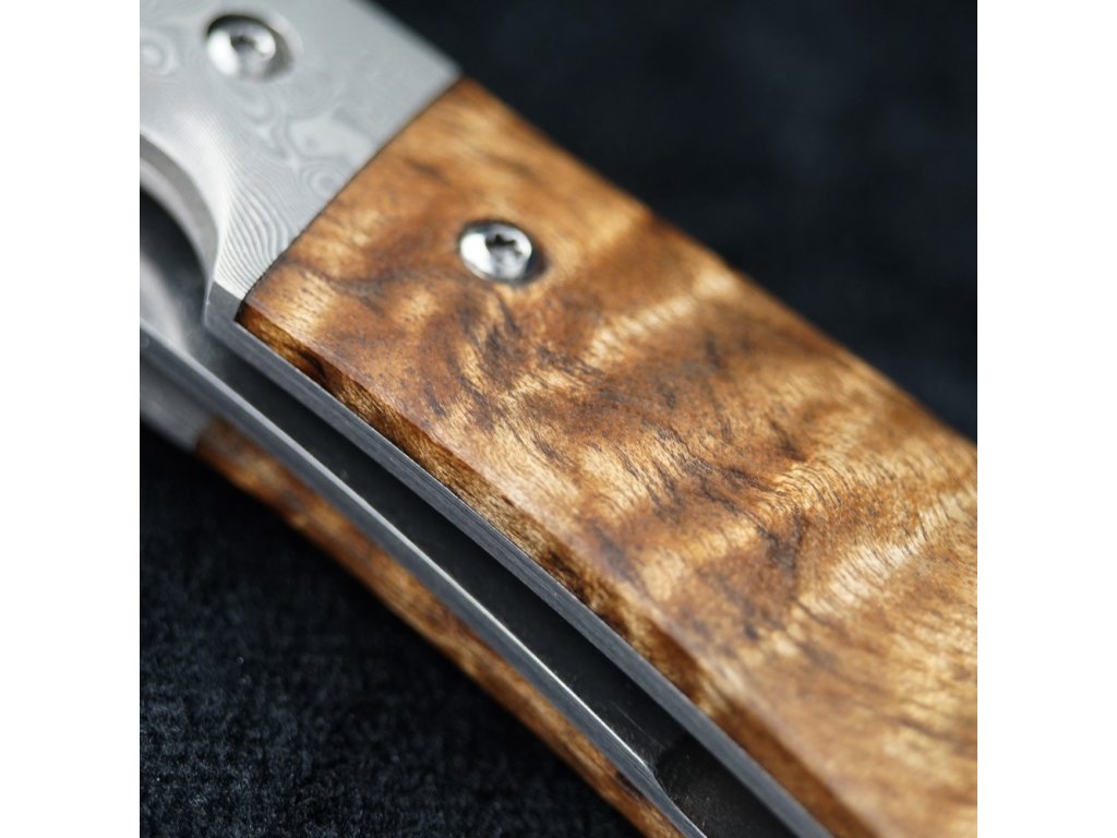 Lovecký zavírací damaškový nůž Dellinger Scorpion Maple Burl-Wood
