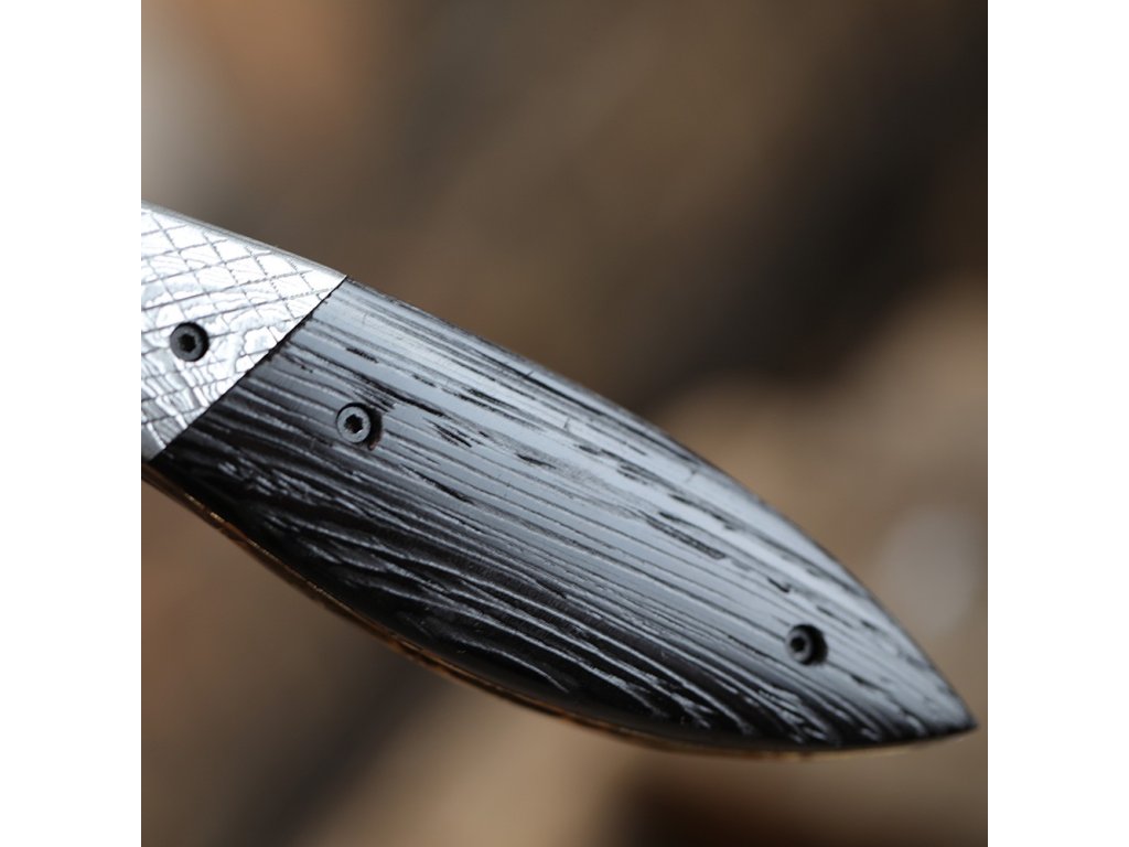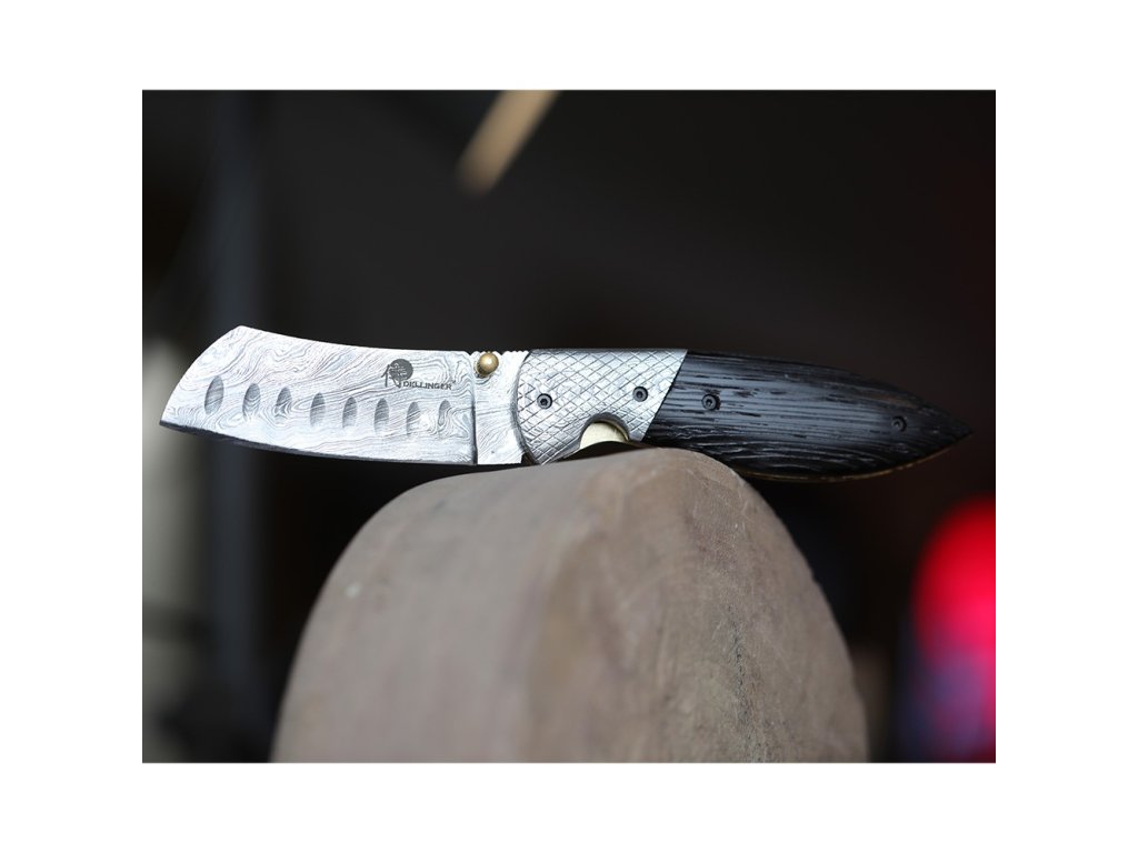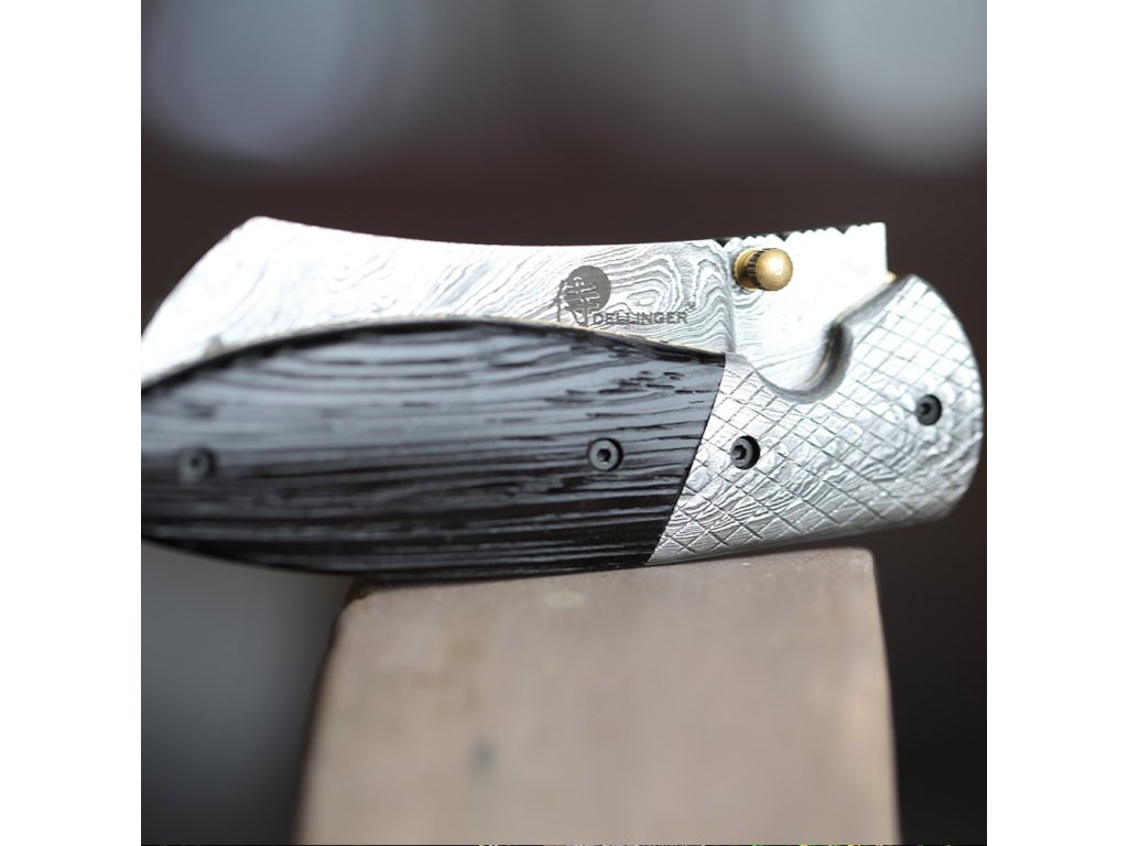 Nůž Dellinger WENGE Obsidian je elegantní kapesní nůž s čepelí z uhlíkové damaškové oceli. Tento nůž se pyšní rukojetí z kartáčovaného dřeva Wenge, doplněnou damaškovým bolstrem. Jedná se o ohromující kombinaci, která zaujme na první pohled.
