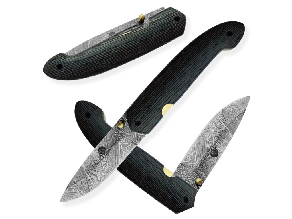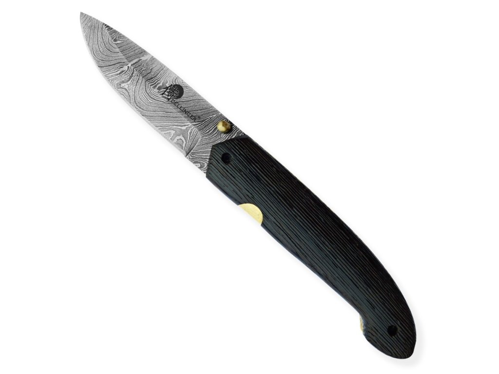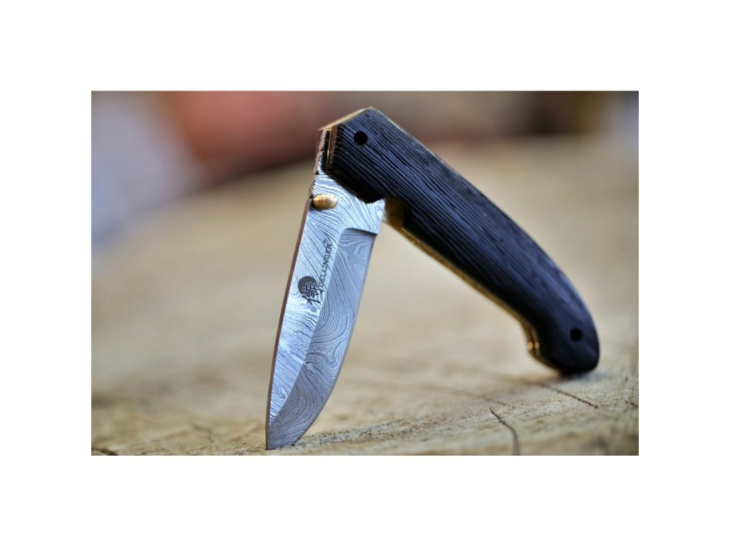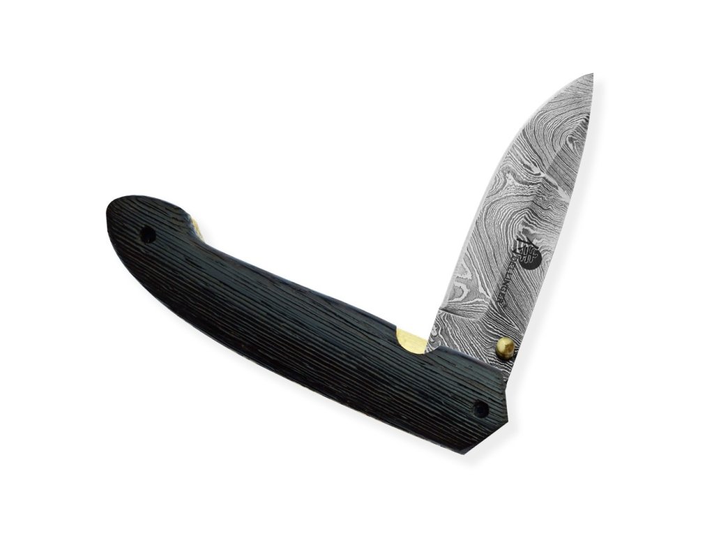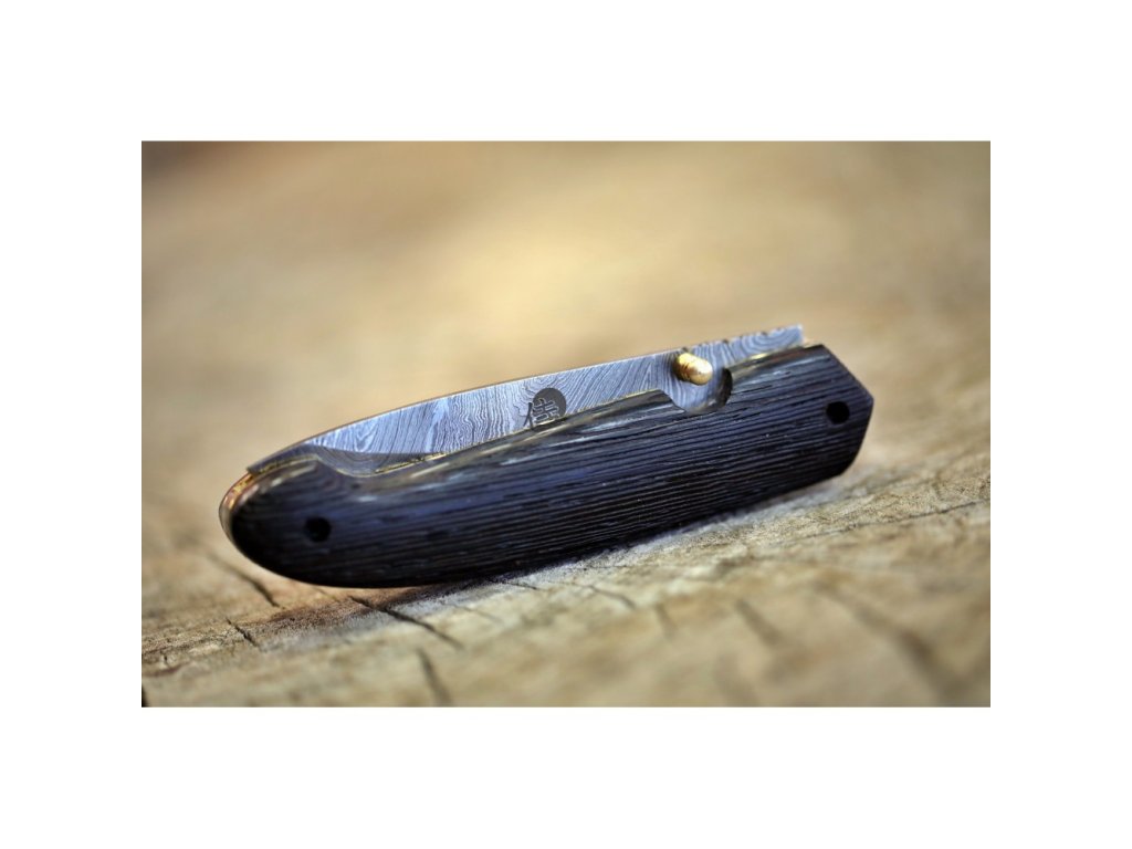 Velmi povedený zavírací lovecký nůž z damascénské oceli s rukojetí z exotického kartáčovaného dřeva Wenge-Wood. Nůž je vyroben z 352 ručně překládaných vrstev ocelí 1095 a 15n20, což zajišťuje extrémně ostré a trvanlivé ostří. Jeho design a kvalita se stane jedinečným uměleckým dílem.