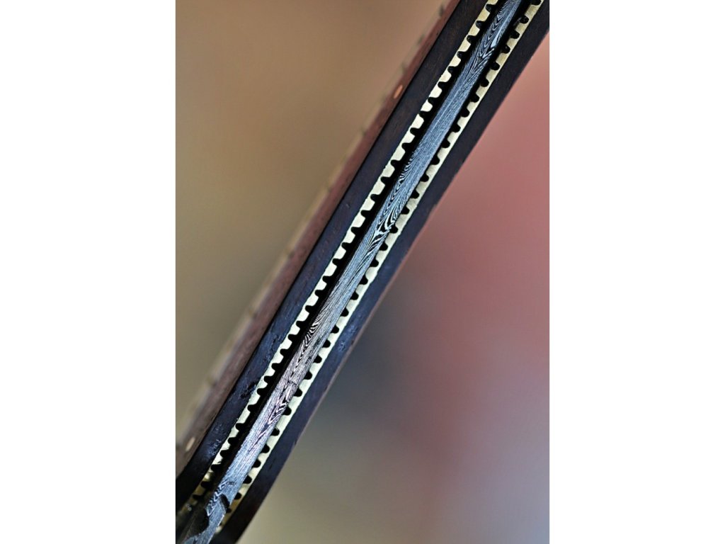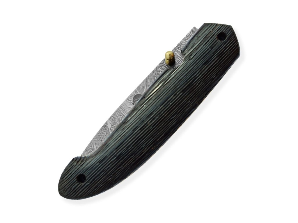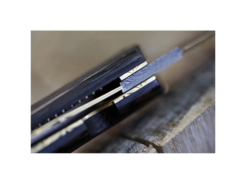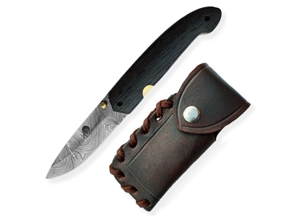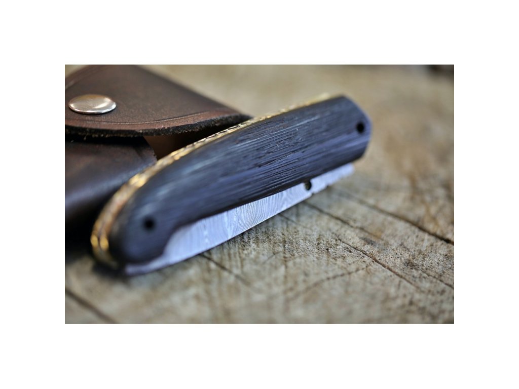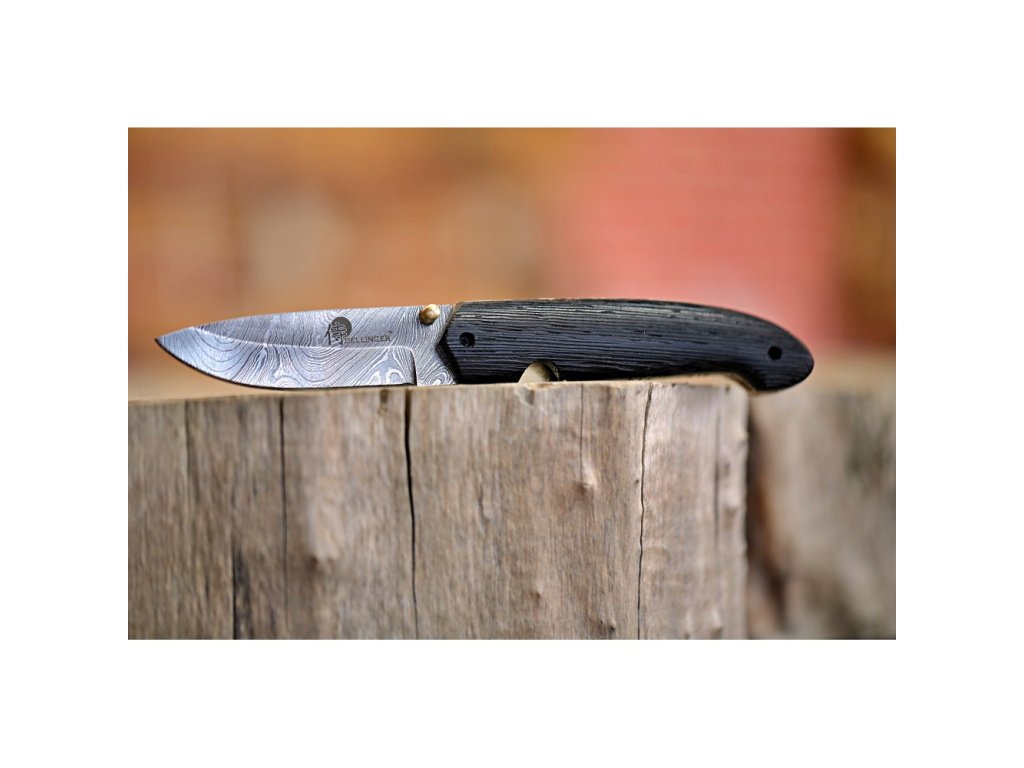 Velmi povedený zavírací lovecký nůž z damascénské oceli s rukojetí z exotického kartáčovaného dřeva Wenge-Wood. Nůž je vyroben z 352 ručně překládaných vrstev ocelí 1095 a 15n20, což zajišťuje extrémně ostré a trvanlivé ostří. Jeho design a kvalita se stane jedinečným uměleckým dílem.