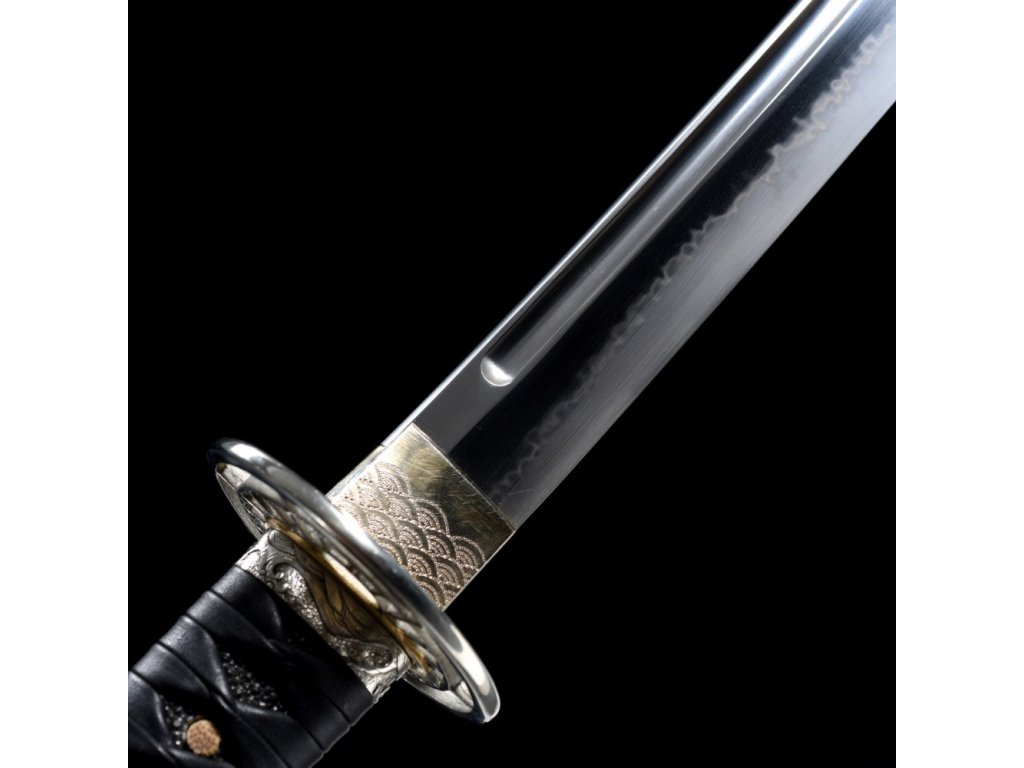 Výrazný reálný Choji hamon je tvořen dle dávných tradičních metod, které vychází z mnohaletých zkušeností kovářského mistra, který výrobou této nádherné zbraně strávil několik dnů. Vše na tomto meči je individuálně zhotoveno, včetně saye a habaki, jsou použity nejkvalitnější komponenty, včetně špičkového laku na sayu a skutečné rejnočí kůže nejvyšší kvality. Jedná se o špičkovou repliku samurajského meče, která je vhodná k sekovým zkouškám a lze ji rozložit na jednotlivé části. Tato čepel byla vyzkoušena a testována tak, aby odstranila vše co jí stojí v cestě ! Sori (zakřivení čepele) je speciálně navrženo tak, aby bylo dosaženo co možná nejjemnějších a nejčistších řezů. To vše v kombinaci s výběrem tradičního kovaného Koshirae zaručuje, že získáte to nejlepší z hlediska vzhledu i funkčnosti. Uhlíková ocel T-10 má působivou tvrdost HRC 58 - perfektní kombinace této tvrdosti je podtrženo zakřivením čepele Sori, které umožňuje snadné přeseknutí tatami, slaměné rohože, nebo bambusu pro tameshigiri. Full tang konstrukce této katany výrazně zvyšuje sílu meče. Čepel je typu shinogi-zukuri, tento typ čepele se vyrábí od 10.století našeho letopočtu. Hrot meče ko kissaki se skutečným Diamond-Shaped Yokote, které je velmi dobře definováno tím, že hamon prochází po celé délce přes Boshi. Yokote je velmi důležité pro strukturální integritu špičky meče. Pomáhá absorbovat otřes, rozptýlí sílu a přispívá k stabilitě a síle meče při tzv. sekořezu. Tato katana (samurajský meč) je vhodná na použití v praxi, firma Dellinger se však zříká jakékoliv odpovědnosti za zranění a poškození vzniklá při použití. Schraňujte mimo dosah dětí ! Jakákoliv manipulace se samurajským mečem je na vaší vlastní odpovědnost. Nezapomeňte, že máte ve svých rukou smrtící zbraň !