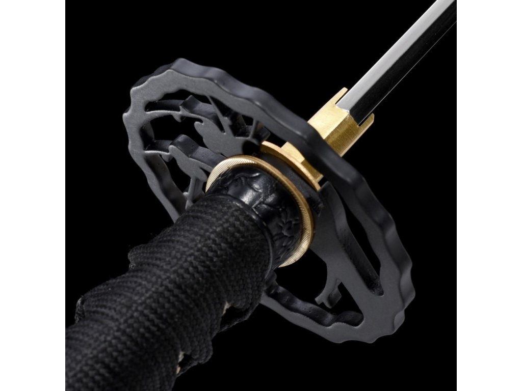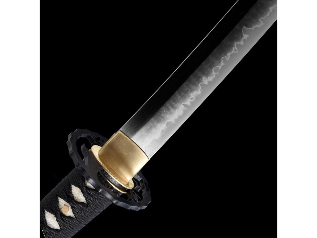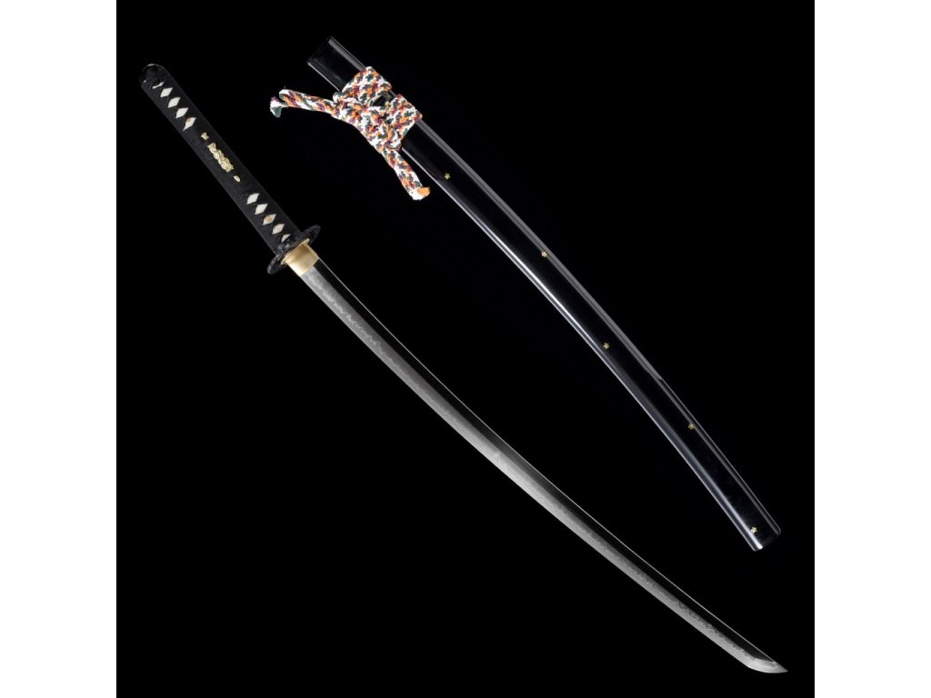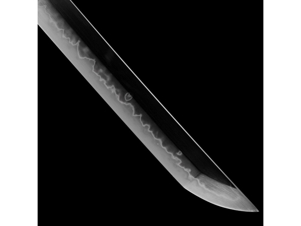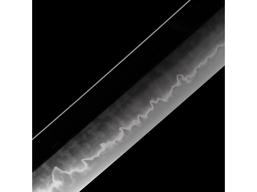 Výrazný reálný Choji hamon je tvořen dle dávných tradičních metod, které vychází z mnohaletých zkušeností kovářského mistra, který výrobou této nádherné zbraně strávil 45 pracovních dnů. Vše na tomto meči je individuálně zhotoveno, včetně saye a habaki, jsou použity nejkvalitnější komponenty, včetně špičkového laku na sayu, japonského hedvábí a skutečné rejnočí kůže nejvyšší kvality. Čepel bez bo-hi byla ve finální fázi leštěna kamenem hazuya - tím je dosaženo téměř žiletkového ostří (razor sharp). Jedná se o špičkovou repliku samurajského meče, která je vhodná k sekovým zkouškám a lze ji rozložit na jednotlivé části. Tato čepel byla vyzkoušena a testována tak, aby odstranila vše co jí stojí v cestě ! Sori (zakřivení čepele) je speciálně navrženo tak, aby bylo dosaženo co možná nejjemnějších a nejčistších řezů. To vše v kombinaci s výběrem tradičního kovaného Koshirae zaručuje, že získáte to nejlepší z hlediska vzhledu i funkčnosti. Uhlíková ocel T-10 má působivou tvrdost HRC 58 - perfektní kombinace této tvrdosti je podtrženo zakřivením čepele Sori, které umožňuje snadné přeseknutí tatami, slaměné rohože, nebo bambusu pro tameshigiri. Full tang konstrukce této katany výrazně zvyšuje sílu meče. Čepel je typu shinogi-zukuri, tento typ čepele se vyrábí od 10.století našeho letopočtu. Hrot meče ko kissaki se skutečným Diamond-Shaped Yokote, které je velmi dobře definováno tím, že hamon prochází po celé délce přes Boshi. Yokote je velmi důležité pro strukturální integritu špičky meče. Pomáhá absorbovat otřes, rozptýlí sílu a přispívá k stabilitě a síle meče při tzv. sekořezu. Tato katana (samurajský meč) je vhodná na použití v praxi, firma Dellinger se však zříká jakékoliv odpovědnosti za zranění a poškození vzniklá při použití. Schraňujte mimo dosah dětí ! Jakákoliv manipulace se samurajským mečem je na vaší vlastní odpovědnost. Nezapomeňte, že máte ve svých rukou smrtící zbraň !