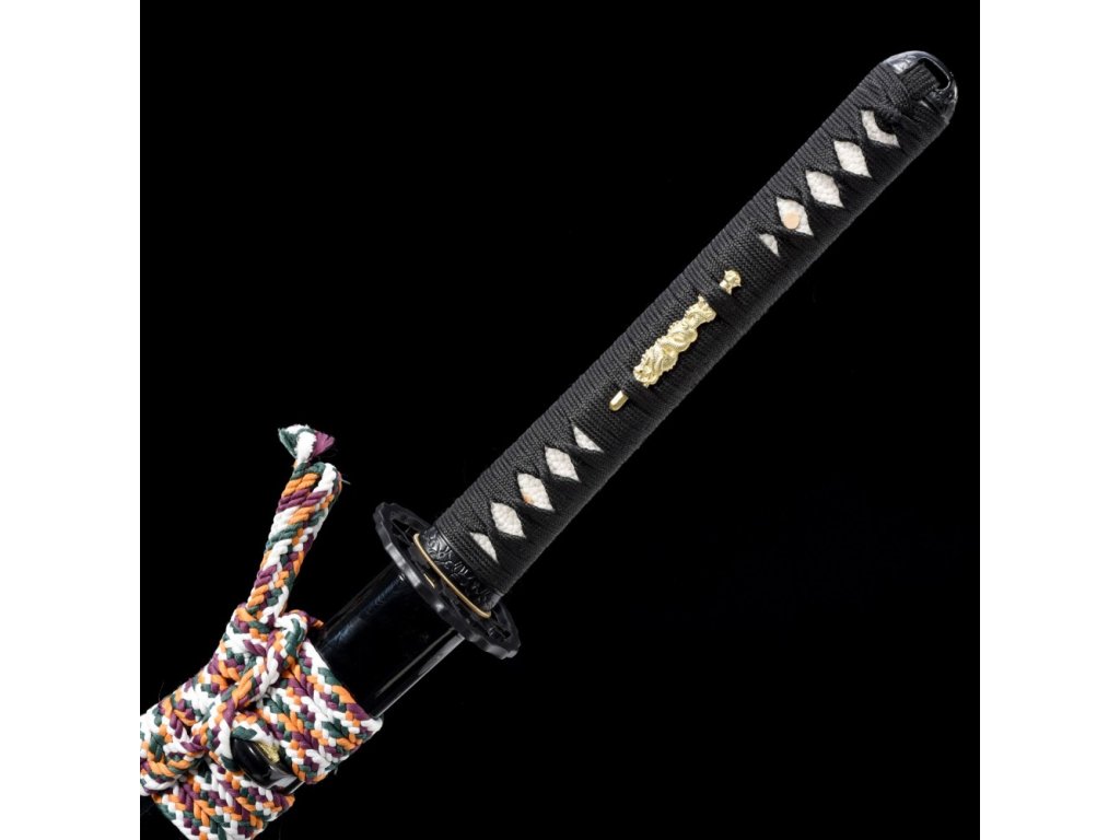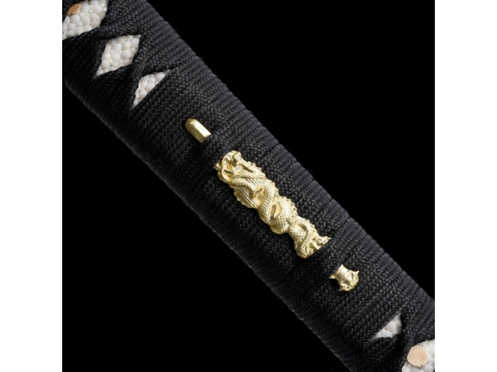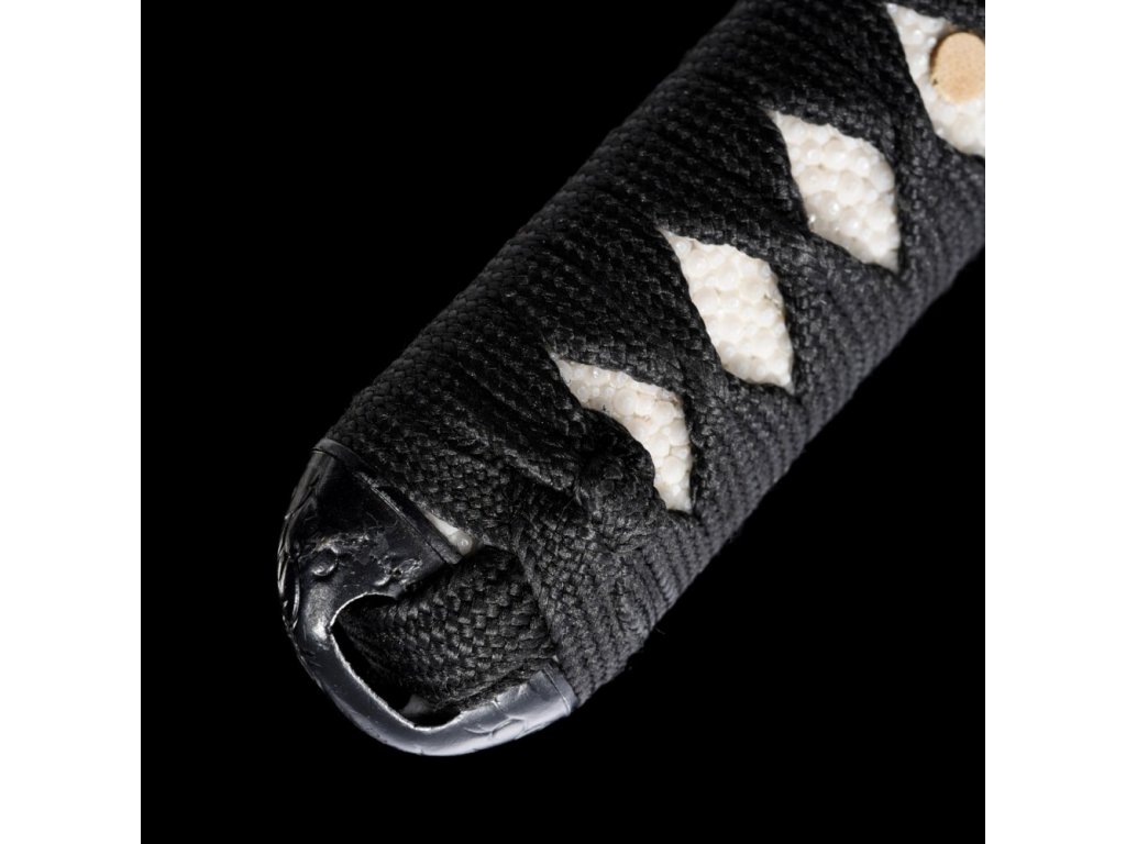 • Tsuka (rukojeť) - dřevěné jádro, potažena pravou rejnočí kůží (Samegawa), s černou omotávkou z pravého japonského hedvábí Ito. Čepel zajištěna 2 bambusovými kolíky "mekugi". Z každé strany tsuky je menuki (ornament).
