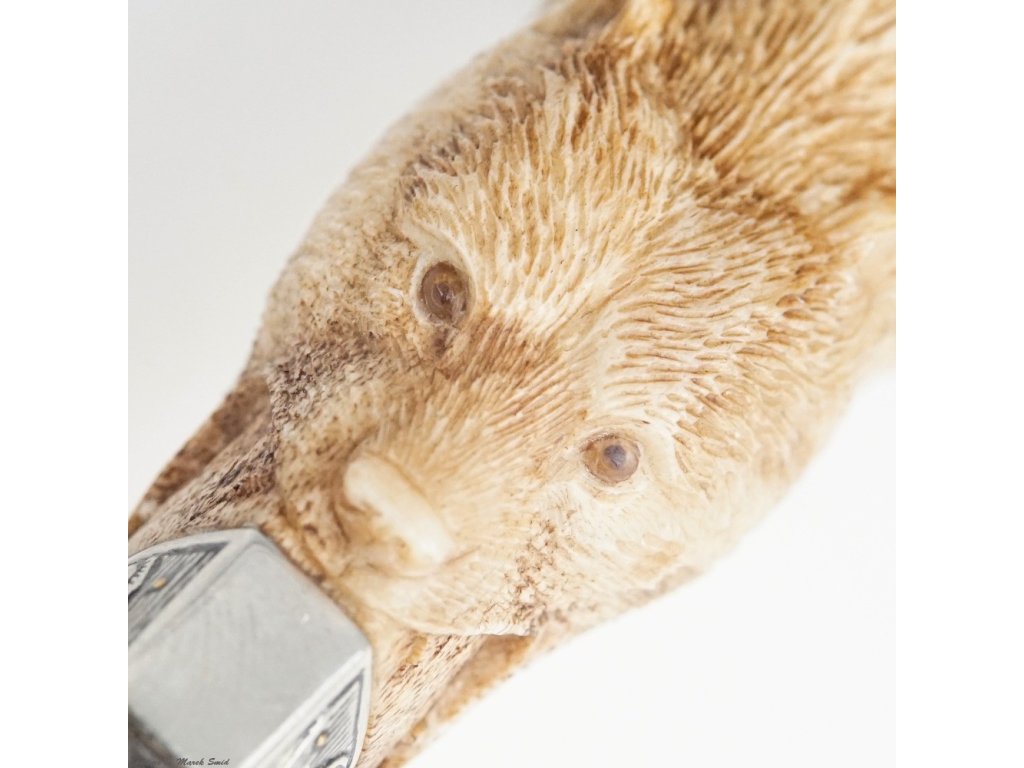Pro tvorbu rytin na noži "Bear Sign Engraved" zvolil Dellinger proslulého mistra rytců, který ztvárnil nejjemnější detaily medvěda do rukojeti.
