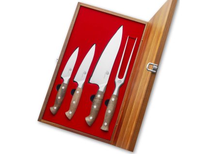 3 ostrý parťáci + vidlička do čtyřky! Sada Dellinger Walnut je na maso, zeleninu i ego. Nářez v luxusní bedně. Dárek, co fakt řeže!