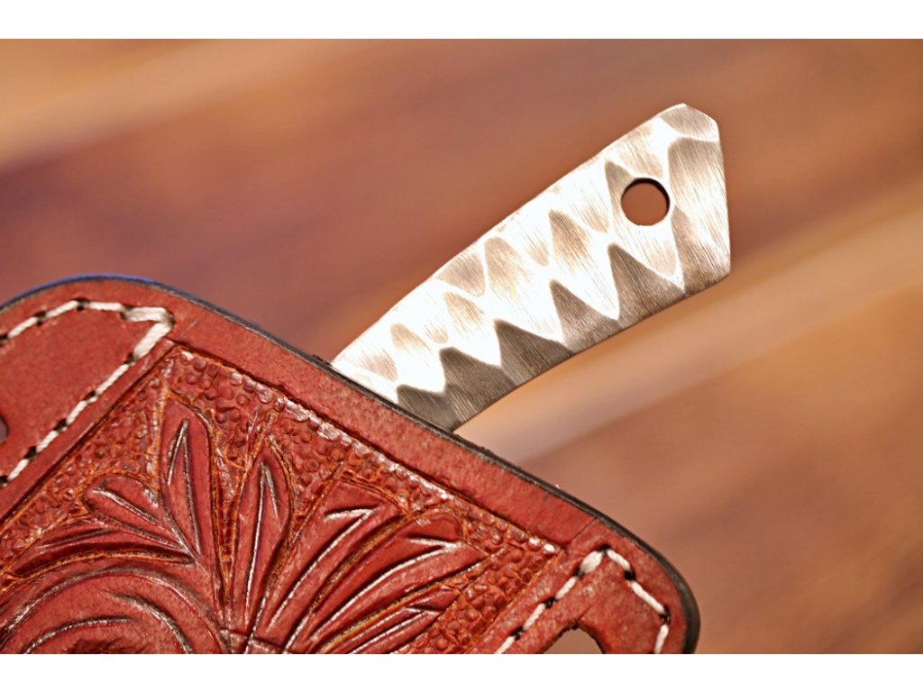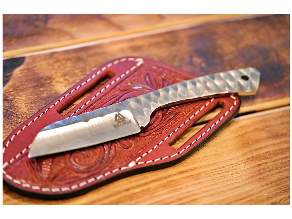 - Rukojeť: Rukojeť je vyrobena z přírodních materiálů, což může zahrnovat dřevo nebo jiné materiály, které podporují estetiku a funkčnost nože.