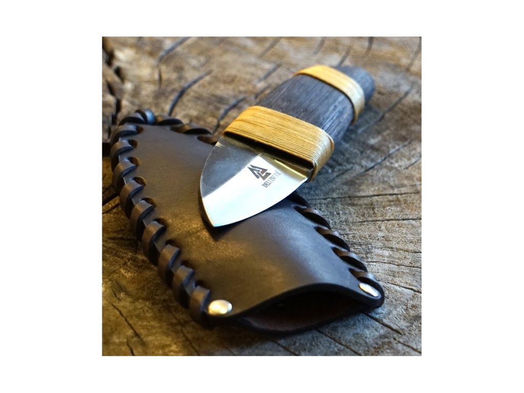 Nůž Dellinger "D2" Ötzi je exkluzivní lovecký nůž s pevnou čepelí a rukojetí vyrobenou z exotického dřeva Wenge, doplněnou o konopný provaz pro pohodlný úchop. Tento nůž je inspirován pazourkem nalezeným u Ötziho, pravěkého člověka žijícího před 3300 lety. Zde jsou klíčové parametry tohoto nože:
