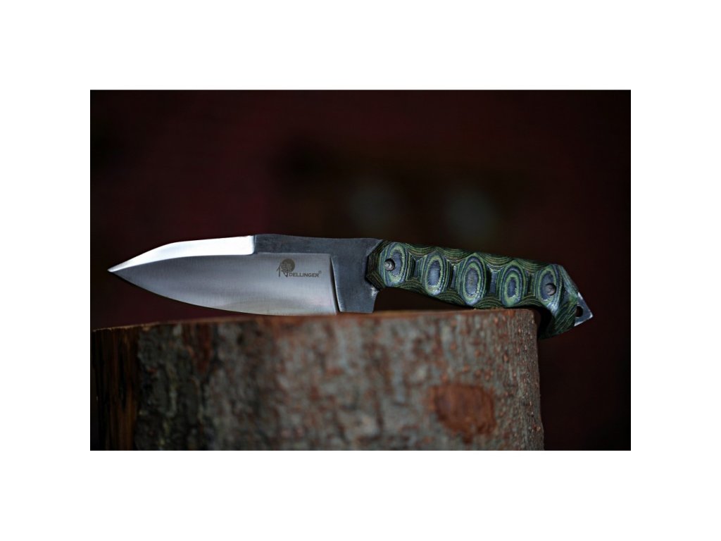 Nůž Dellinger "D2" Rhino Attack je exkluzivní lovecký nůž s pevnou čepelí a rukojetí z Micarty, ručně kovaný a zpracovaný z oceli D2. Tento nůž je navržen pro maximální odolnost a výkon díky pečlivému vytvrzení, temperování a žíhání, díky čemuž dosahuje tvrdosti Rockwell 60-62 HRC. Zde jsou klíčové informace o tomto modelu: