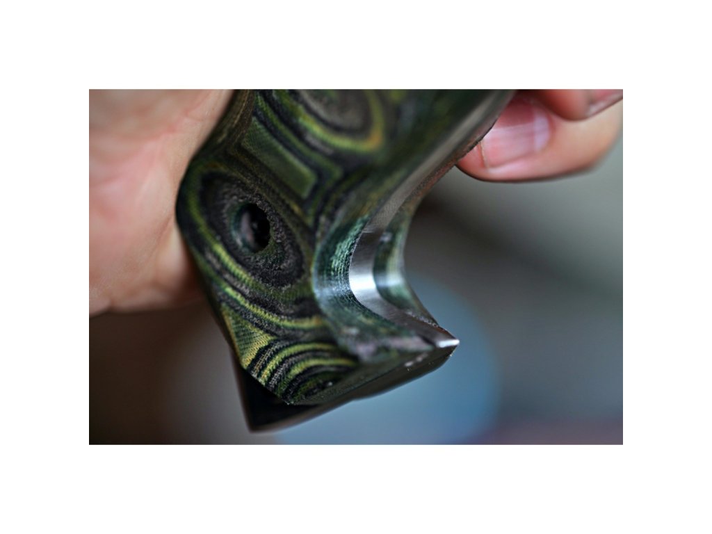 Rukojeť: Micarta je materiál vysoce ceněný pro svou pevnost a odolnost vůči povětrnostním vlivům, což činí rukojeť ideální pro lovecké aktivity.