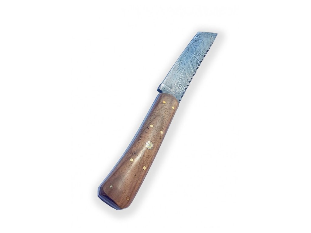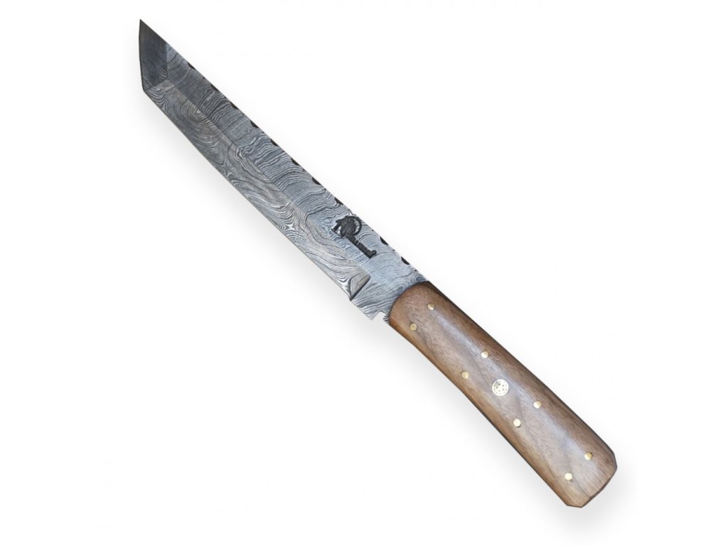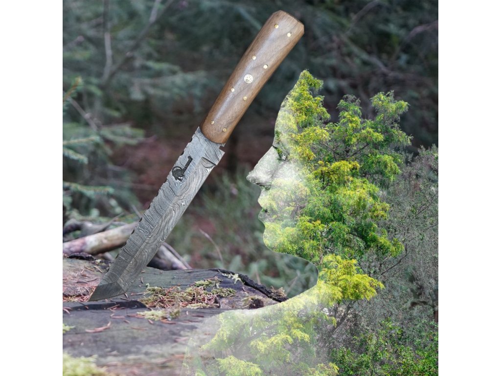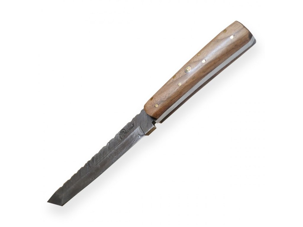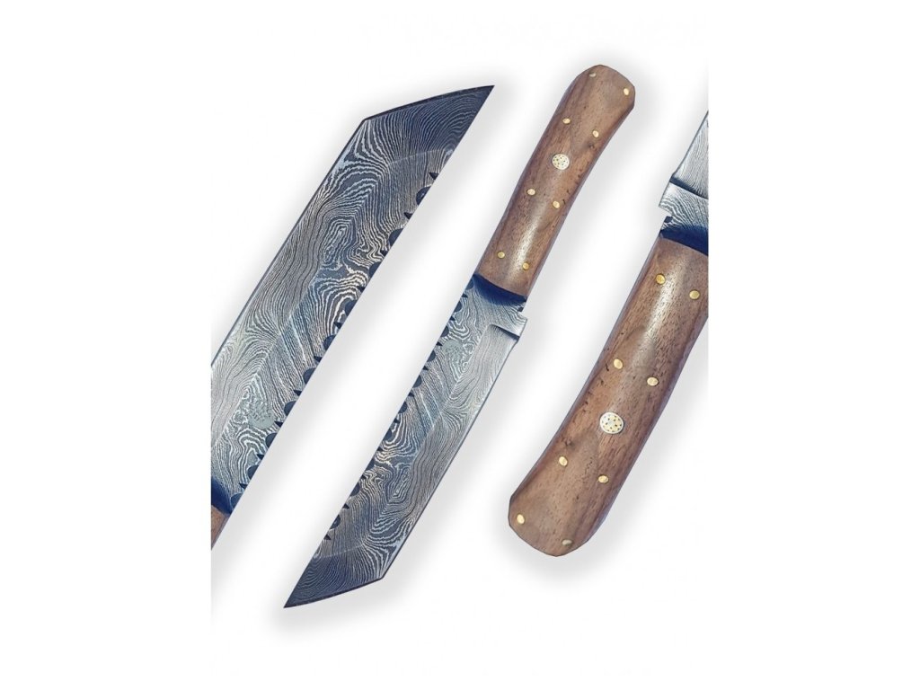 Exklusivní lovecký nůž s pevnou čepelí z damascénské oceli a střenkou z ořechového dřeva. Nůž je vyroben z 352 ručně překládaných vrstev ocelí 1095 a 15n20. Vysoký obsah uhlíku 1095 dává tomuto noži extrémně ostré a trvanlivé ostří. Uhlíkové oceli je mnohem snazší ostřit než nerezové nože. Postupem času Váš nůž přijme krásnou patinu a opravdu se stane jedinečným uměleckým dílem, které je zcela Vaše.