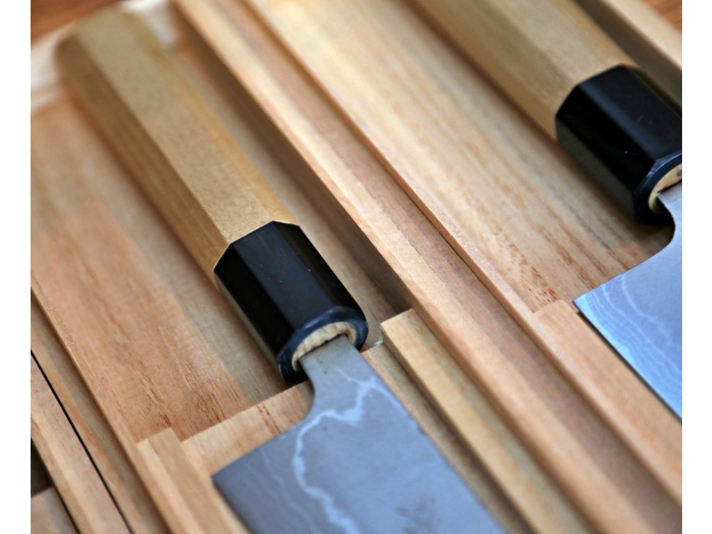 Octagonová rukojeť je vyrobena ze dřeva Mognolie. Vždy je pečlivě ručně leštěná, ergonomicky tvarovaná a navržena pro vynikající ruční ovládání. Tento nůž je vhodný pro použití pravou i levou rukou.