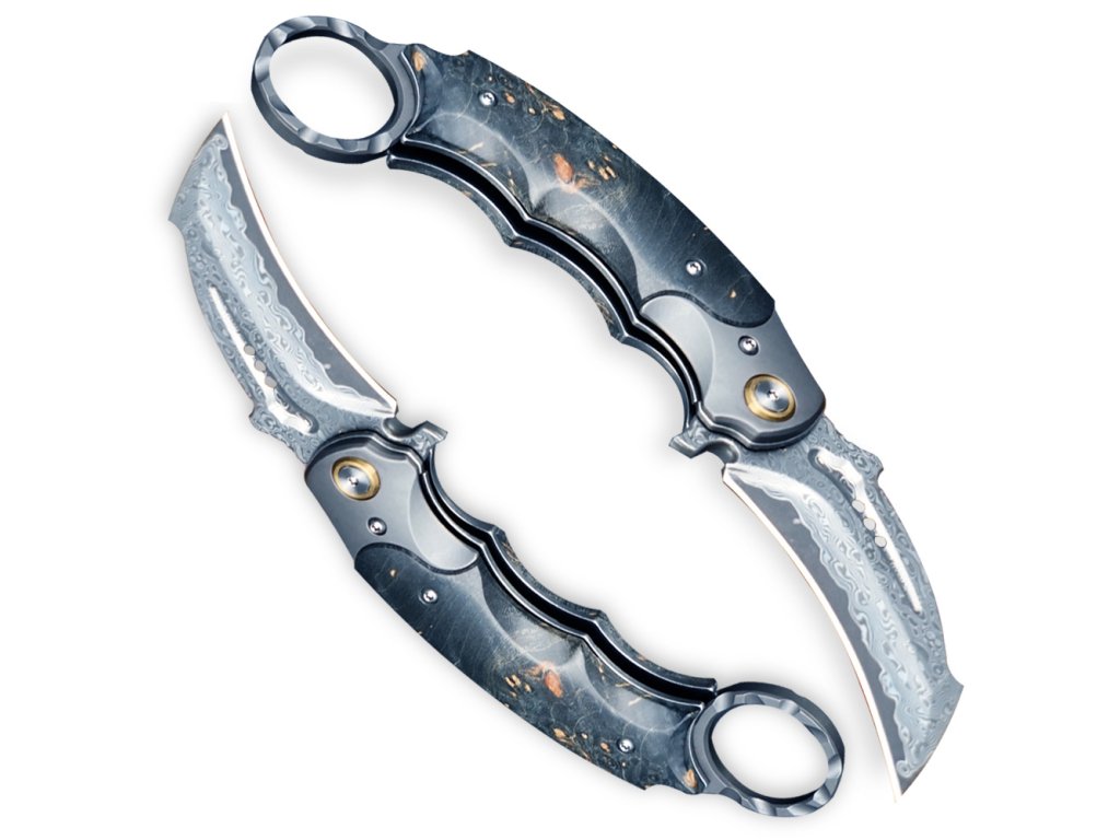 nůž karambit zavírací Dellinger Tueur 10CR15COMOV Damascus Maple