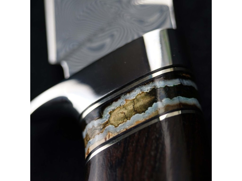 - Kombinace luxusního ebenového dřeva a stabilizované fosílie mamutího zubu.