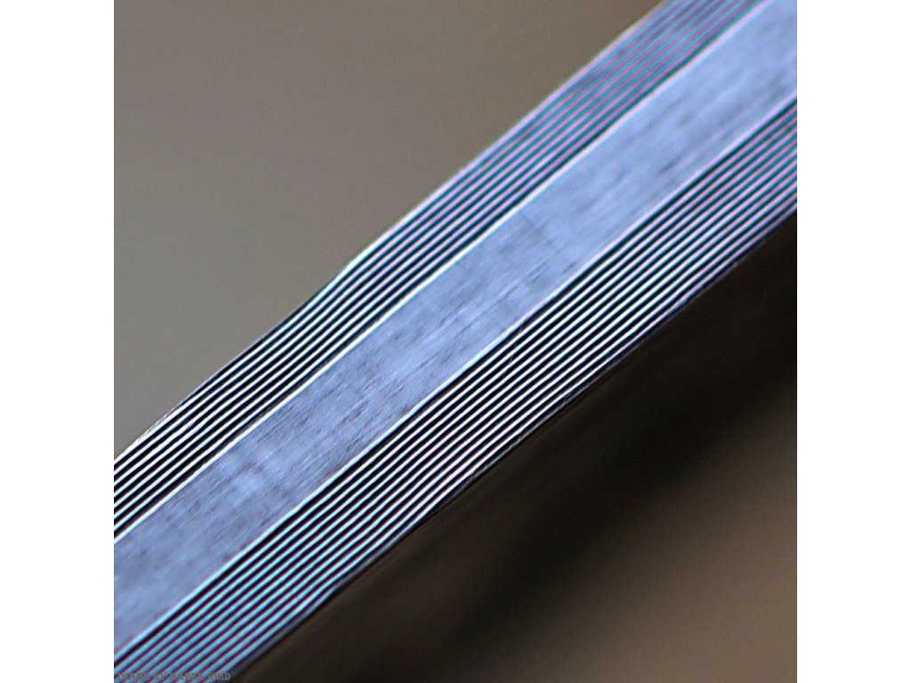 Čepel: Vyrobena z japonské oceli VG-10, která je známá svou vynikající odolností proti korozi a dlouhotrvající ostrostí při tvrdosti R61 +/- 1 Rockwella. Jádro z oceli VG-10 je vloženo mezi 96 vrstev dvou nerezových damascénských ocelí, což zajišťuje nejen vysokou odolnost, ale také unikátní a esteticky přitažlivý damaskový vzor na čepele.
