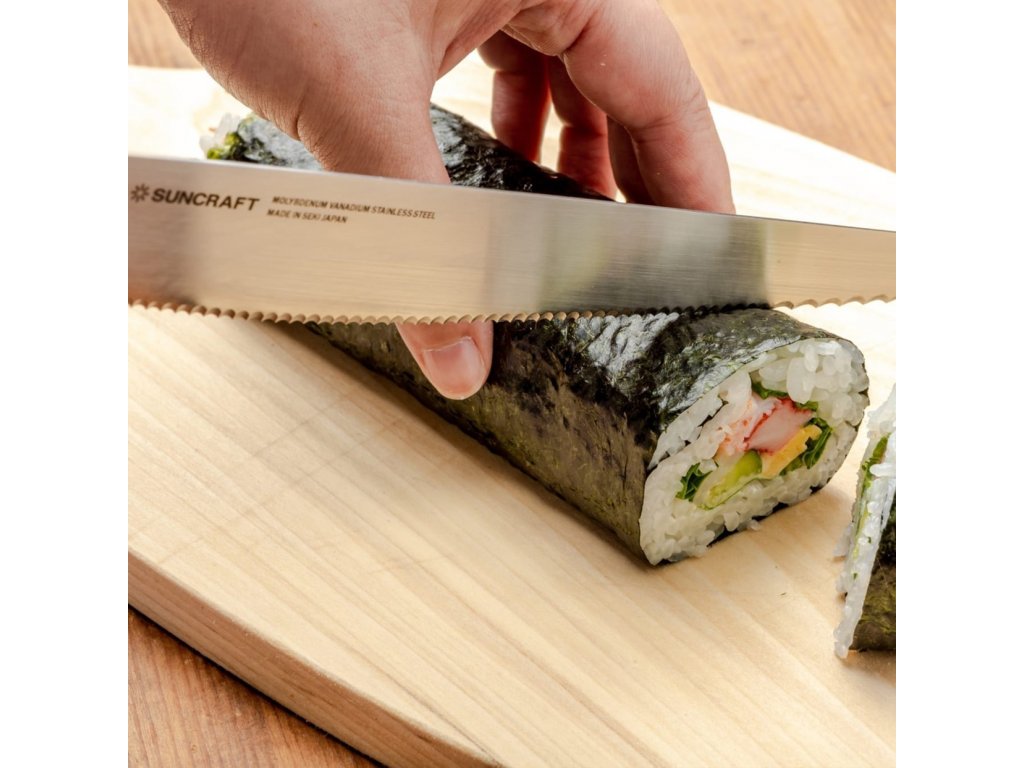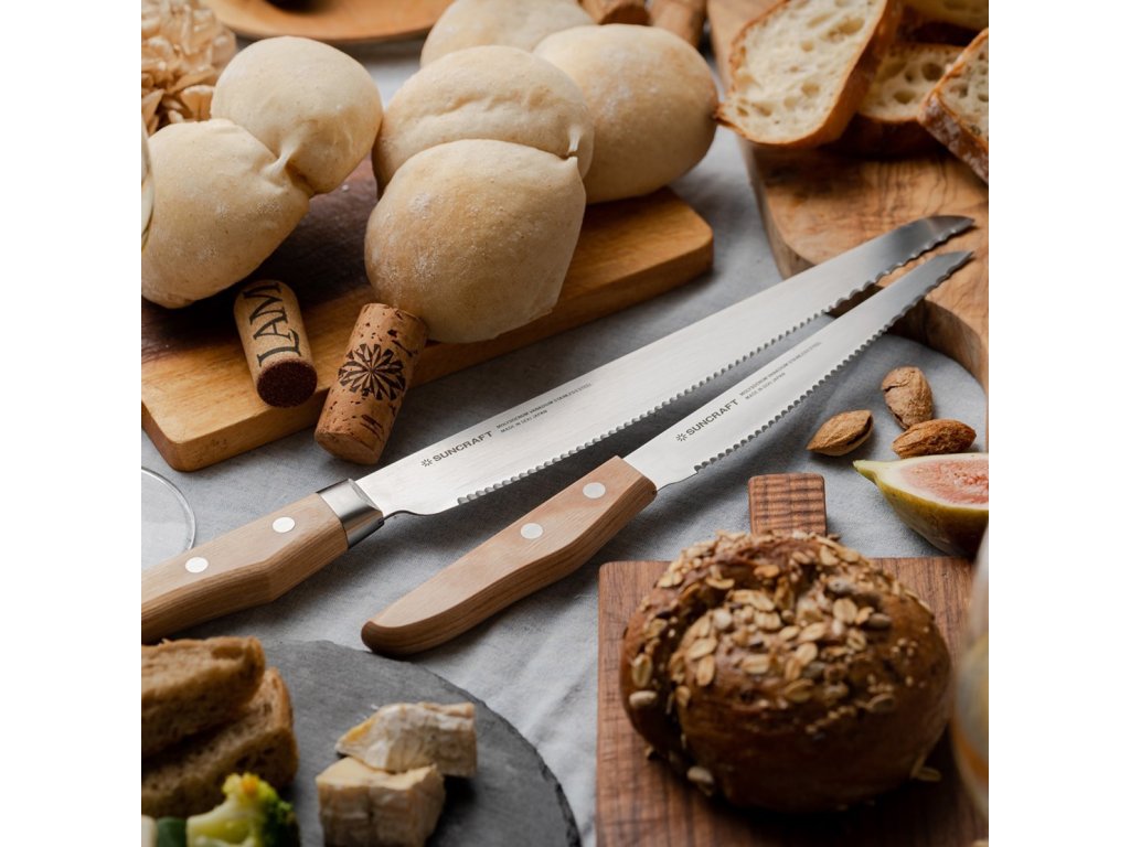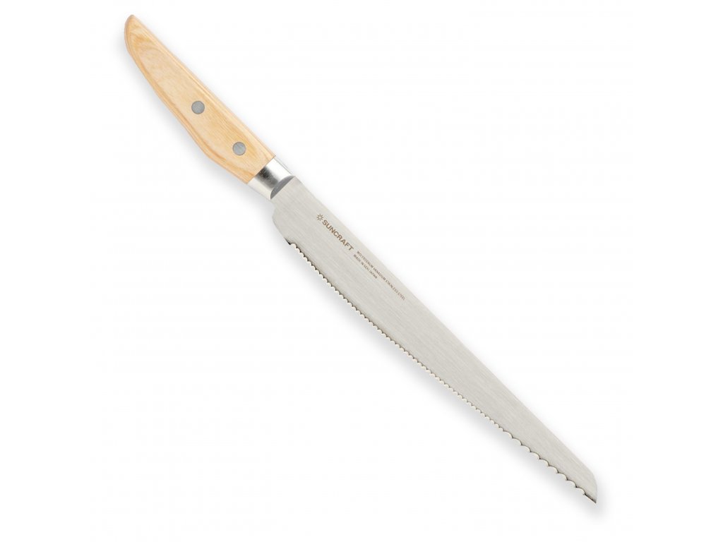 Nůž na chléb Suncraft Seseragi v délce 231 mm je vysoce kvalitní japonský nůž, který se vynikajícími vlastnostmi osvědčil v každodenním používání. Tento nůž je ideální pro krájení různých druhů chleba, pečiva, dortů, ovoce a zeleniny. Je vyrobený z nerezové oceli s obsahem molybdenu, což zajišťuje jeho odolnost vůči korozi a dlouhou životnost ostří.