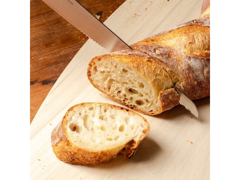 - Všestrannost: Tento nůž je perfektní nejen na chleba a pečivo, ale i na krájení dortů, ovoce a zeleniny. Díky různým velikostem zubů na čepeli snadno zvládne všechny druhy pečiva – čerstvé i staré.