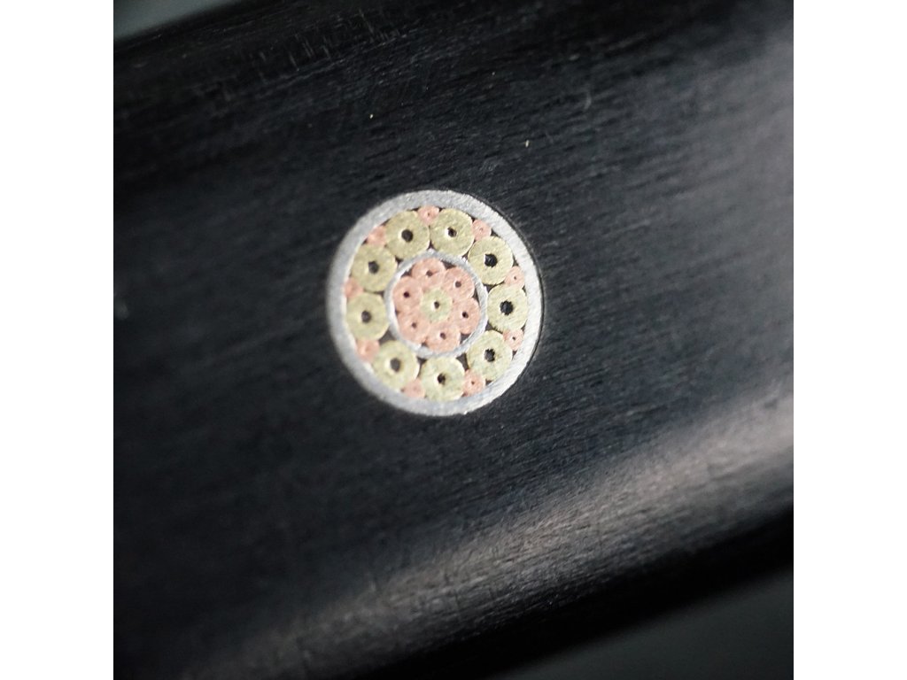 Rukojeť: Ergonomická západní rukojeť je vyrobena z Pakawood, materiálu odolného vůči vodě a vlhkosti, bez zápachu. Rukojeť je pečlivě ručně leštěná a navržena pro pohodlné uchopení, vhodná pro praváky i leváky. Mozaikový pin ve středu rukojeti dodává japonský designový prvek a přispívá k celkovému vzhledu nože.
