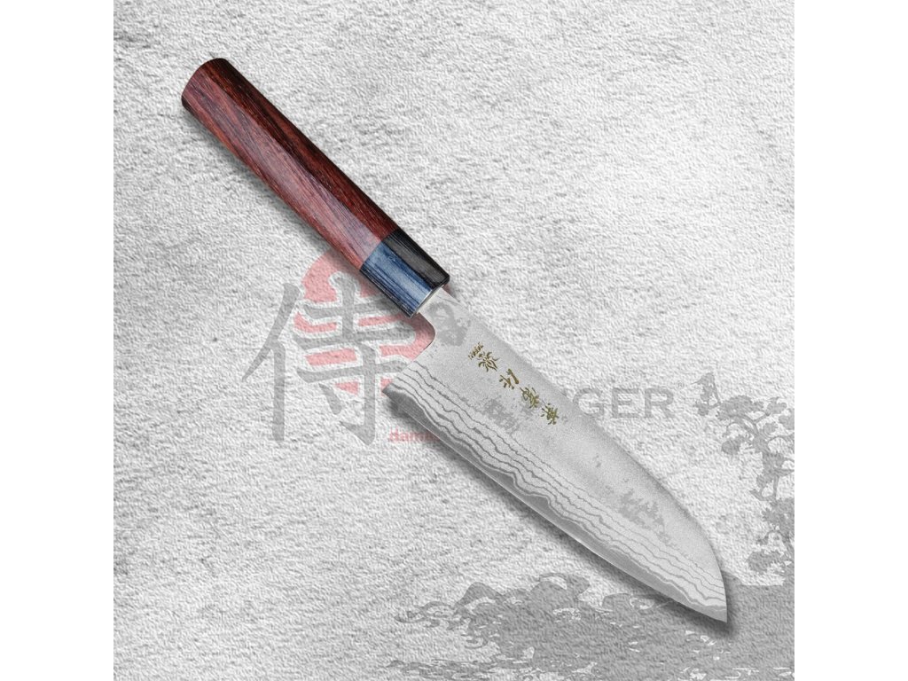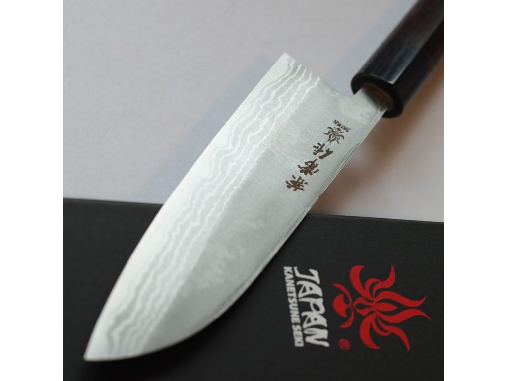 ✅ japonský nůž Santoku 165 mm Kanetsune Blue Steel "Zen-Bokashi"-series z oceli Blue steel #2 core / 11 layers damascus.Pro zachování ostrosti nůž ručně omyjte a ihned osušte.