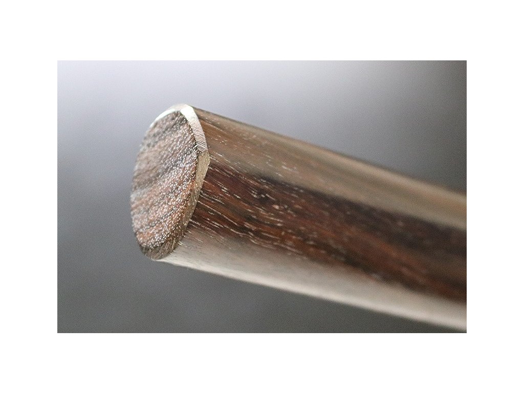 Čepel je osazena tradiční japonskou rukojetí ve tvaru písmene „D“ z červeného santalového dřeva, bolster je z černého dřeva Plywood.