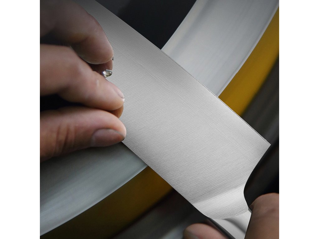- Pohodlná rukojeť: Rukojeť je ergonomicky tvarovaná a poskytuje pohodlný úchop, což usnadňuje manipulaci s nožem a zlepšuje kontrolu při krájení.