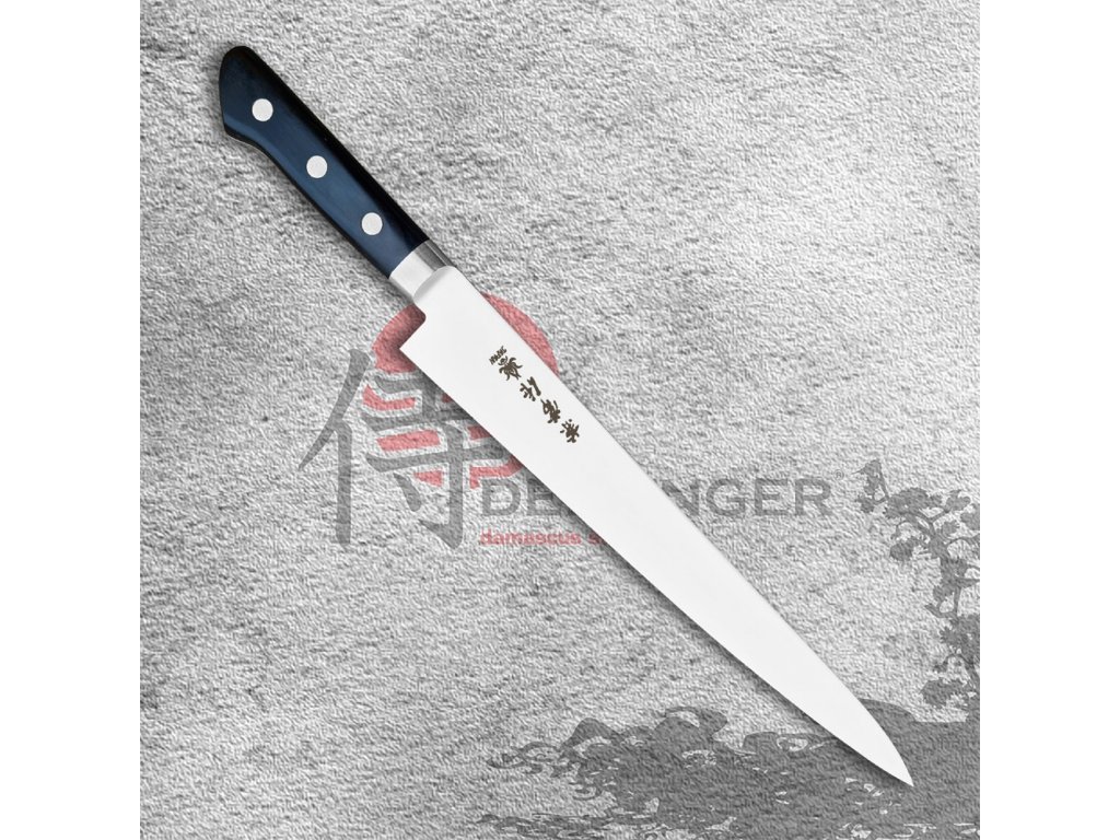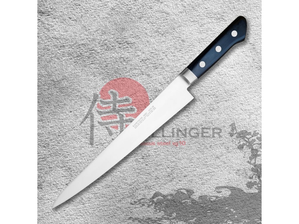 ✅ japonský nůž Sujihiki 240 mm Kanetsune AUS 10 PRO series z oceli AUS-10. Pro zachování ostrosti nůž ručně omyjte a ihned osušte.
