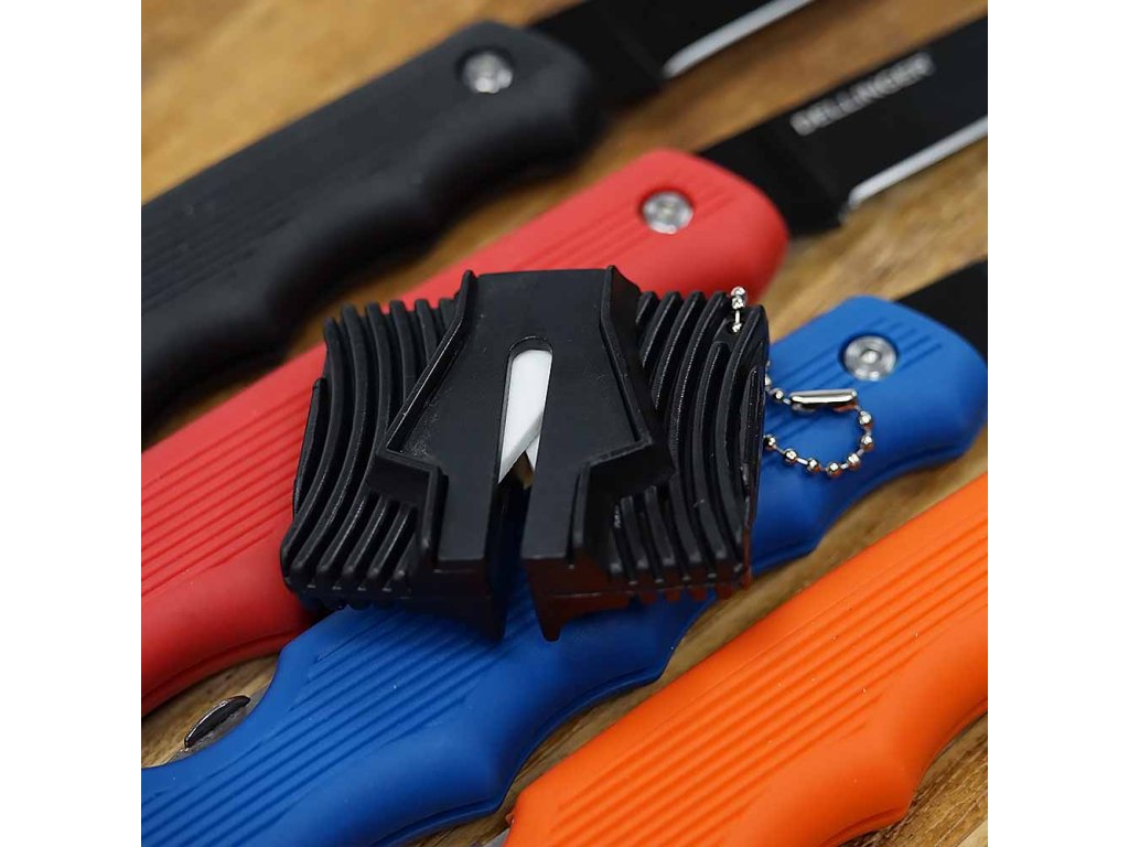 Součástí balení je malý kapesní brousek, který udrží ostří v perfektní kondici i v terénu. Díky řetízku jej můžete připnout na vestu, batoh či klíče.
