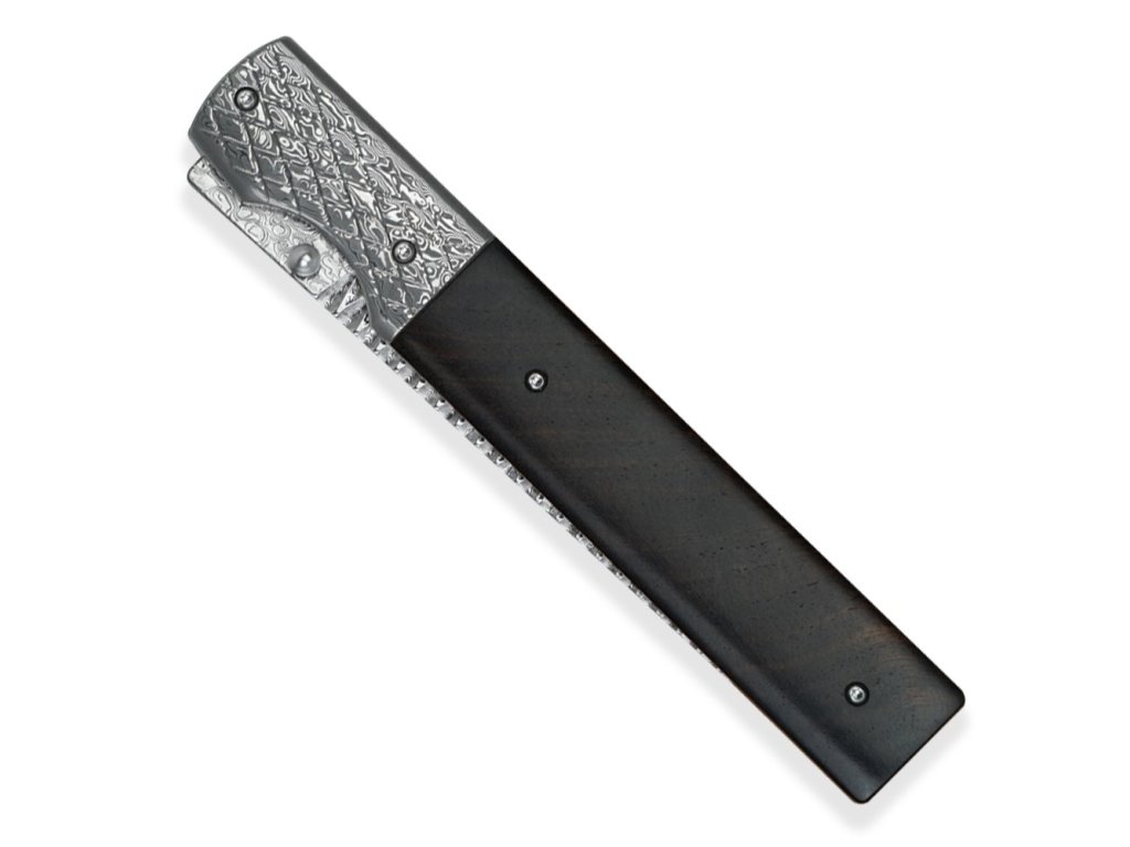 - Rukojeť: Vyrobená z ebenového dřeva, nabízí pevný a pohodlný úchop.
