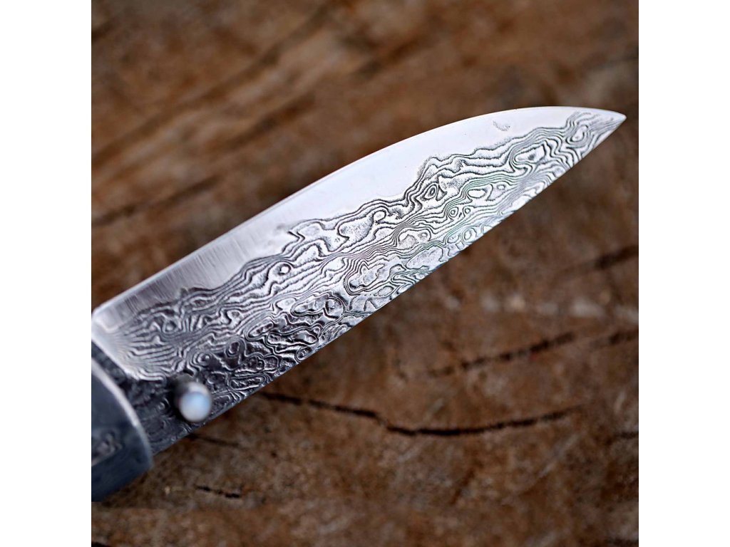 - Čepel: 80 mm dlouhá, vyrobena z japonské oceli VG-10 s jádrem chráněným 66 vrstvami damaskové oceli, což zajišťuje vynikající odolnost a dlouhou životnost