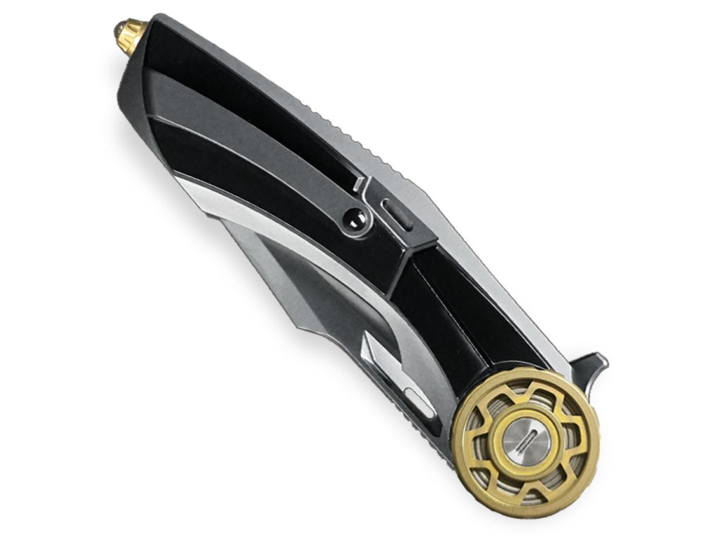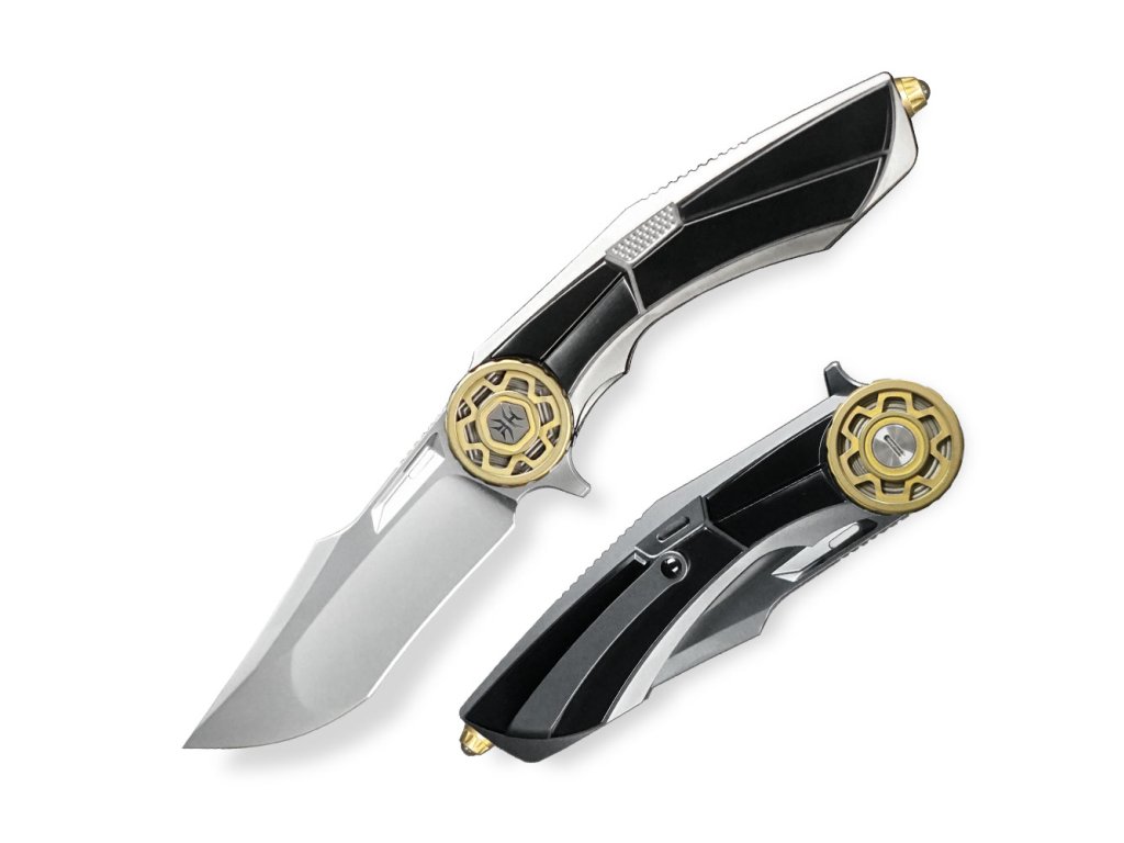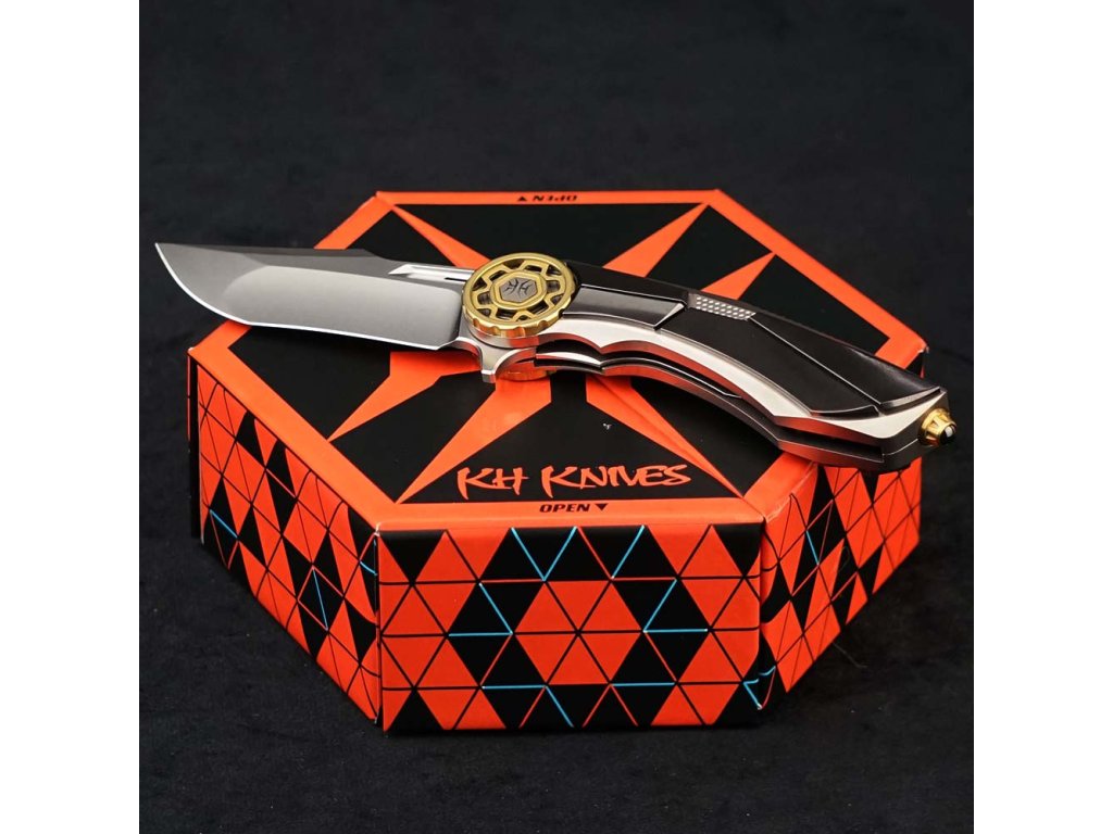 Moderní zavírací nůž s futuristickým designem od KH Knives představuje špičku mezi moderními zavíracími noži, kombinující exkluzivní design a prémiové materiály. Čepel je zhotovena ze švédské oceli CPM-S90V, která je známá svou mimořádnou odolností vůči opotřebení a schopností dlouhodobě držet ostří, což z něj činí ideální volbu pro náročné uživatele a sběratele.