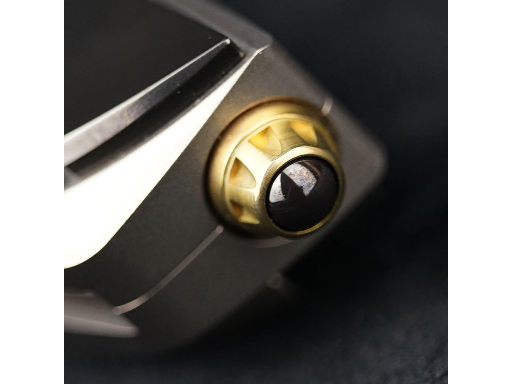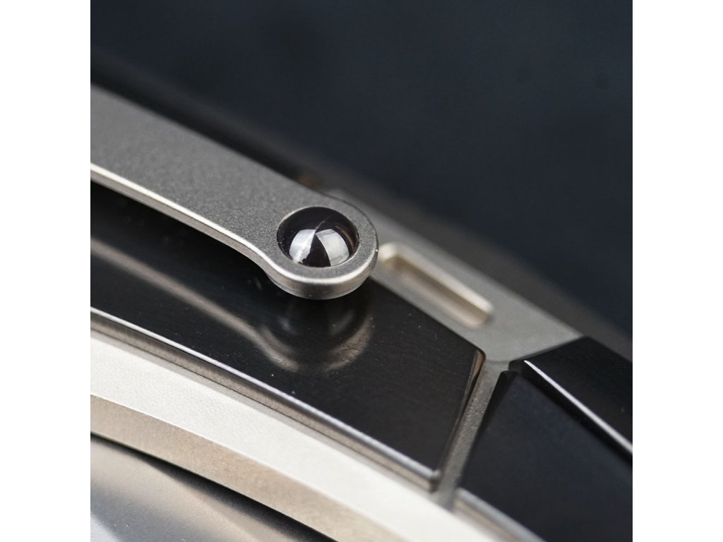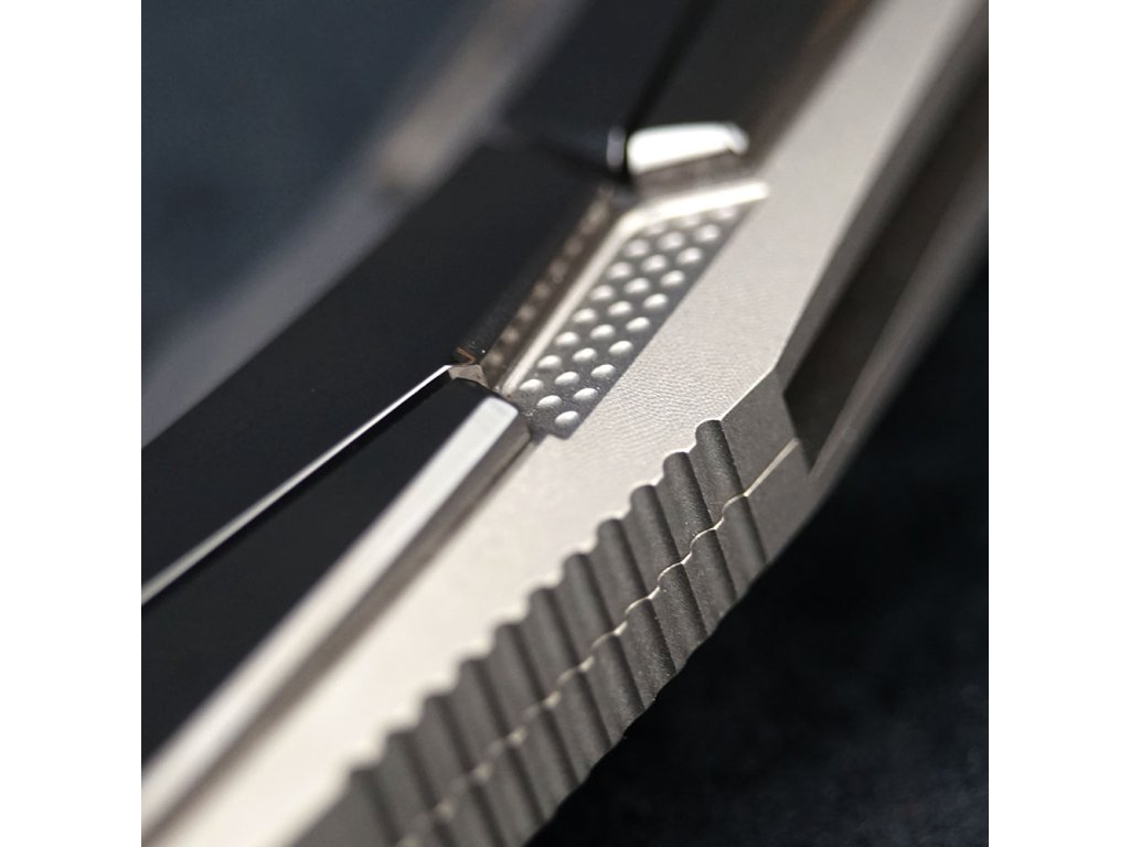 Střenky jsou vyrobeny z titanu 6AL4V, což zajišťuje lehkost, pevnost a vynikající odolnost proti korozi. Navíc jsou doplněny příložkami z černého zirconia, které dodávají noži luxusní vzhled a zvyšují jeho mechanickou odolnost. Kombinace těchto high-tech materiálů zaručuje nejen funkčnost, ale i estetický zážitek.