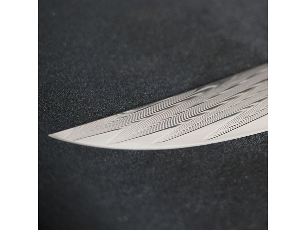 Ostří jako břitva: Srdcem každýho nože je ocel 10Cr15CoMoV – tvrdá, houževnatá a nekompromisně ostrá. Jádro je obklopený 66 vrstvami damašku, který tvoří unikátní vzor SUNSHINE – připomíná sluneční paprsky a dává nožům brutálně sexy vzhled.
