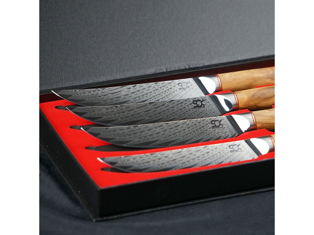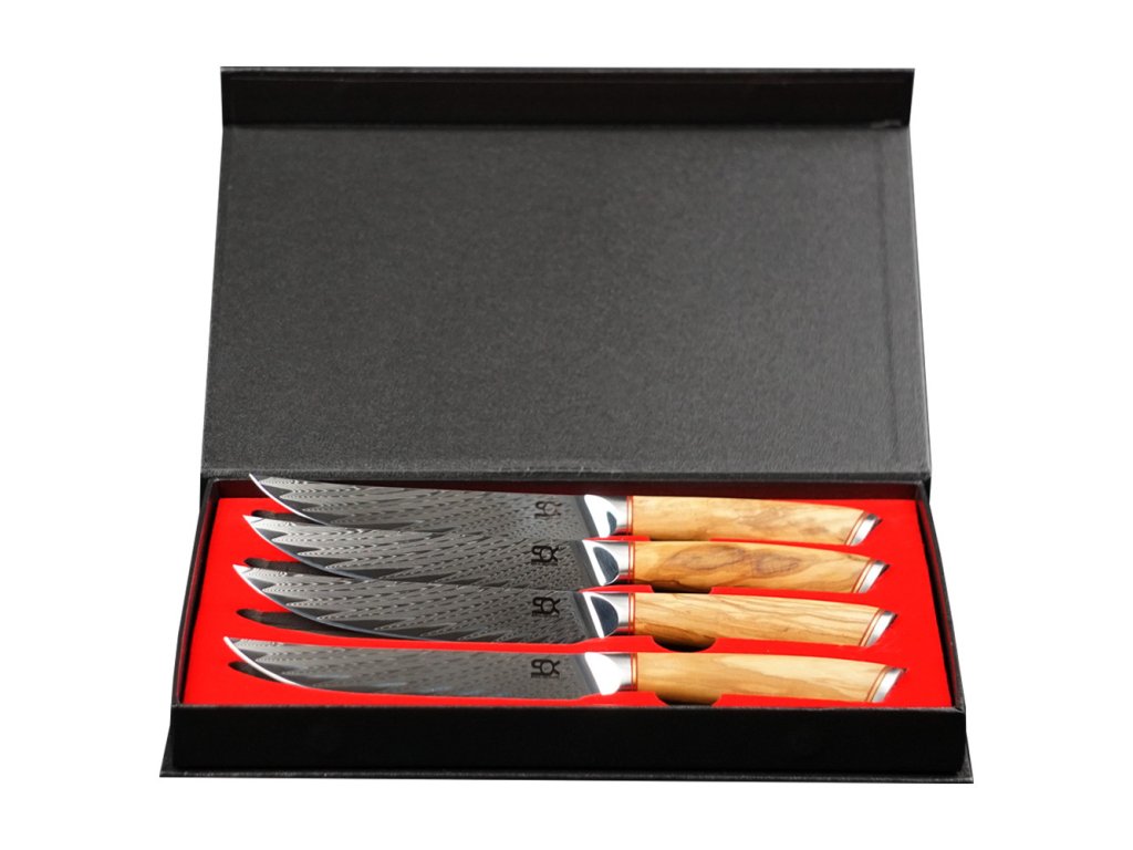 Sada 4 steakových nožů 130 mm SOK Olive Sunshine Damascus v dárkové krabici